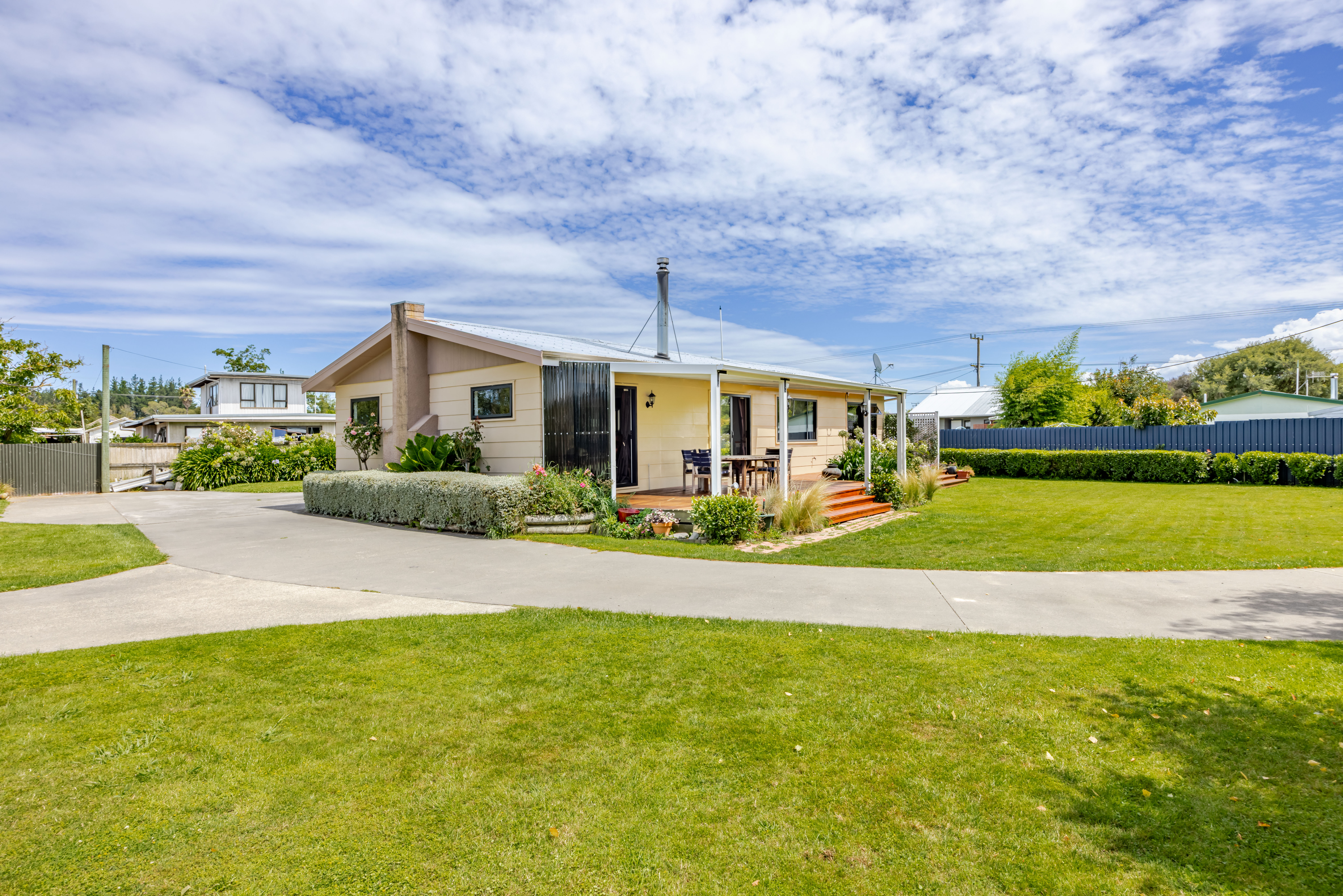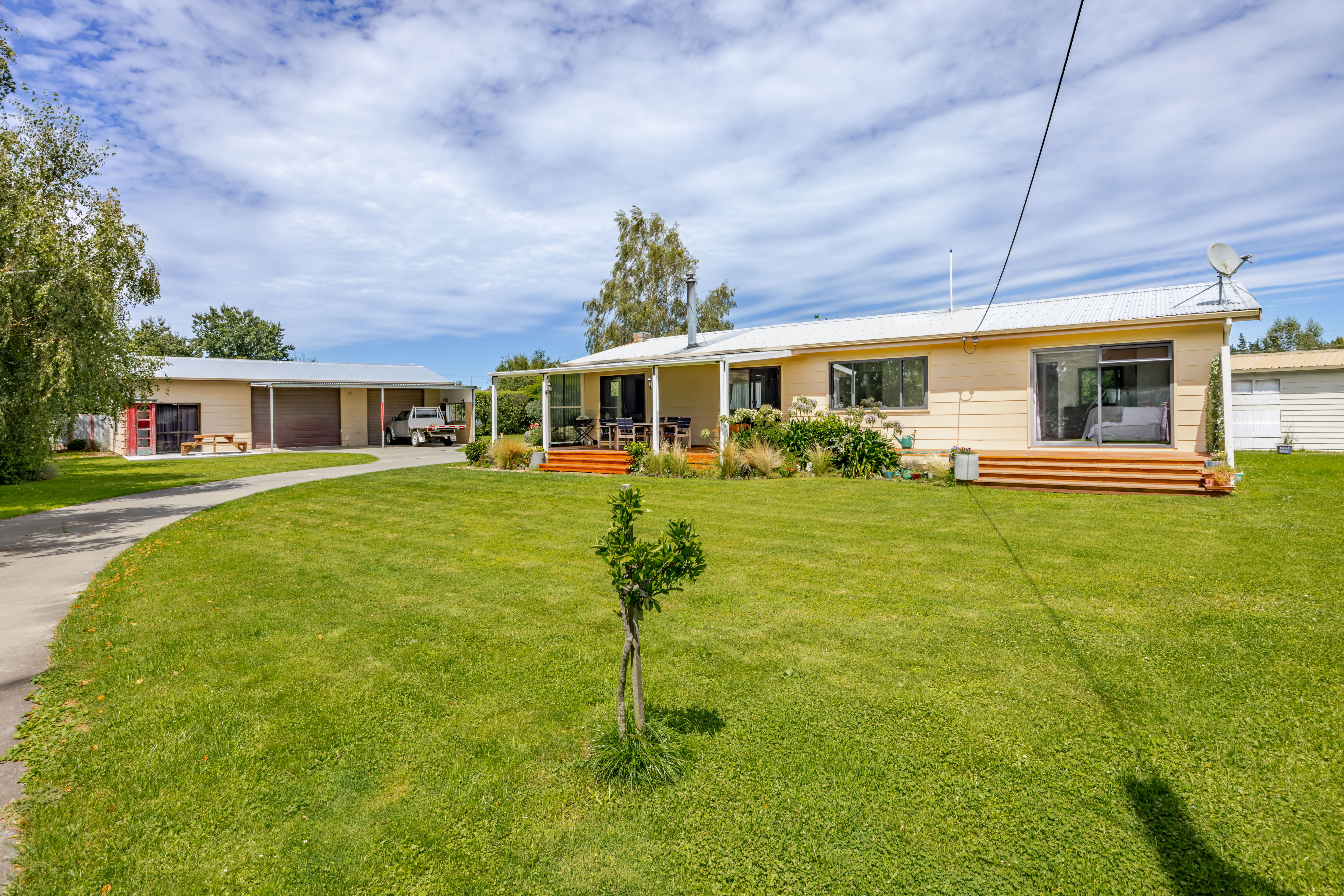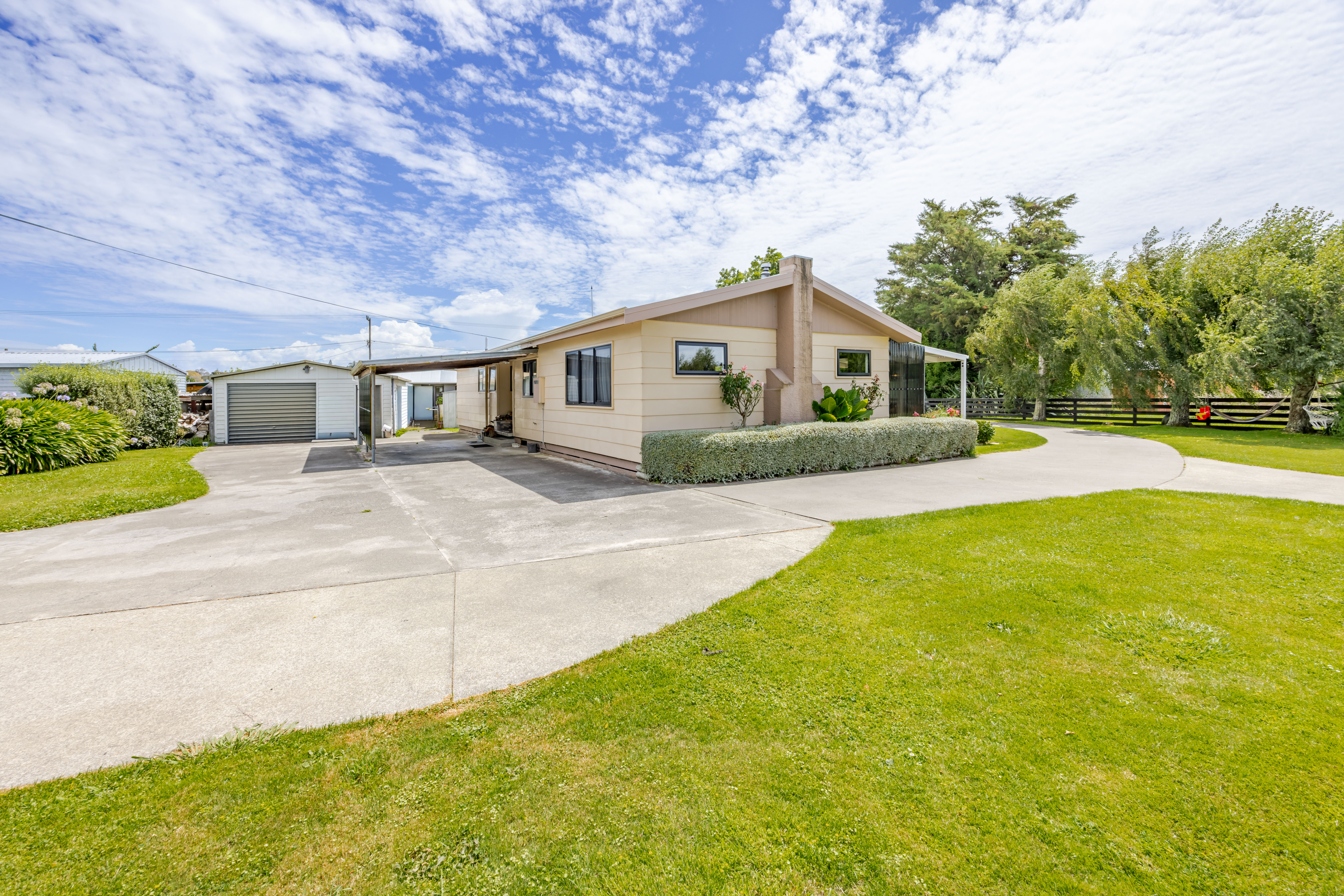 If space, shedding and a serious backyard are high on your wishlist, this one delivers in spades. Set on a huge 1,659m2 section (just over 0.4 of an acre) in a quiet cul-de-sac street an easy walk to school and the shops, this cracker of a property offers what most families in town can only dream about. Fully fenced and very private, there's expansive lawn for kids and pets to run wild, room for backyard cricket, trampoline and even a pop-up pool in summer. And then there's the shedding, and when the shedding is almost on par with the size of the home, you know all your man dreams have come true. A substantial three-bay shed features two enclosed bays with workshop space, plus a third bay currently utilised as a studio or hobby room, complemented by a standalone single garage and carport, meaning there's room for all manner of tools, toys, projects and hobbies. Add to that a sealed driveway with large concrete forecourt, perfect for scootering or shooting hoops. And to keep the other half equally as happy, the house itself is warm, welcoming and immaculately presented. The modernised open plan kitchen, dining and living flows seamlessly through two sliders onto a sun-drenched, north-facing partially covered deck, to extend your living outdoors. Three double bedrooms, all with wardrobes, are complemented by a family bathroom with shower, bath, vanity and separate toilet. A grunty freestanding wood burner with heat transfer, double glazing and insulation in the ceilings, walls and underfloor ensures the home is warm, dry and efficient in winter. Big on space, big on shedding and big on living - this is the kind of property families hold onto for decades! A family setup that's seriously hard to beat!
