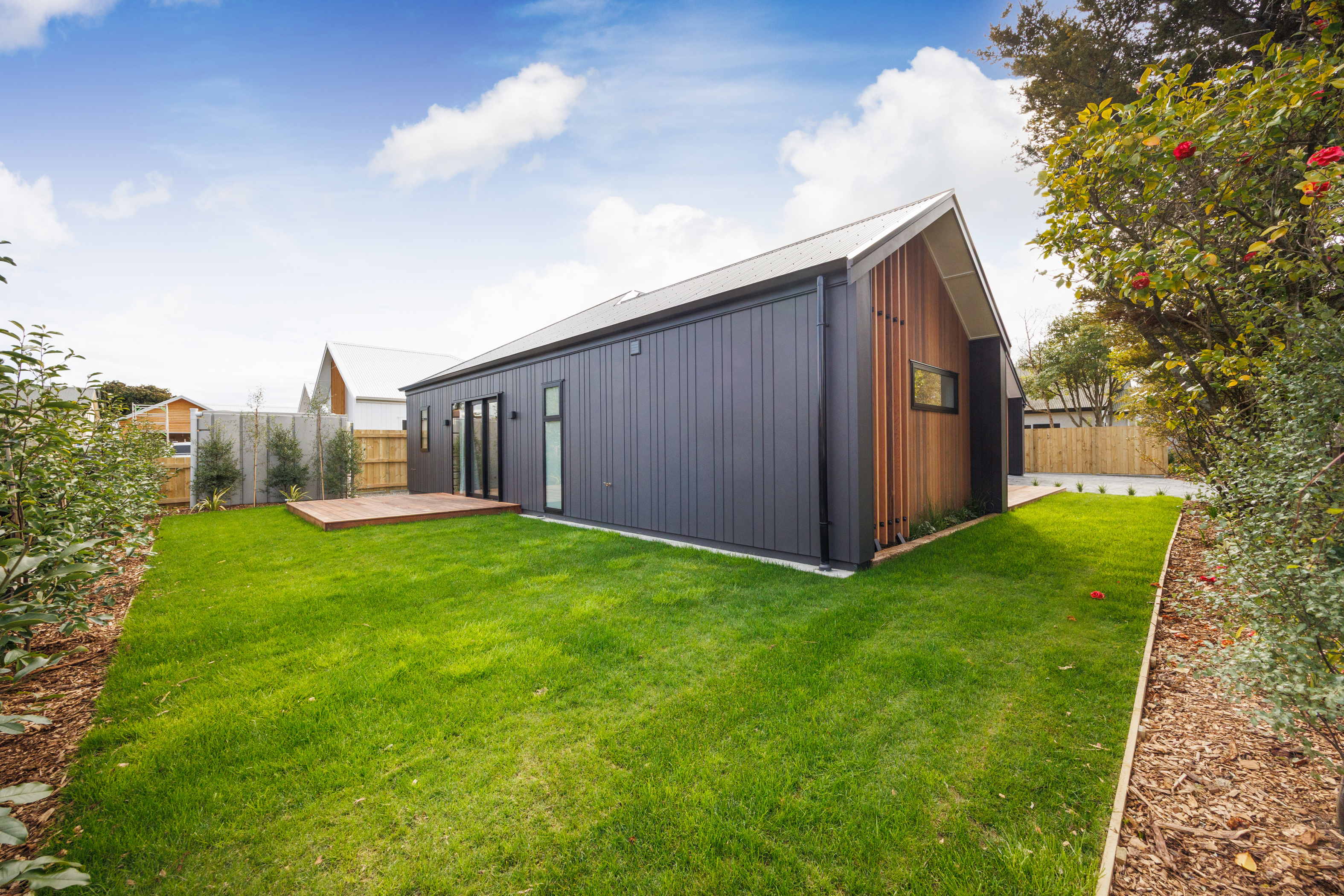 Built by KPA Properties Ltd for high-end living and modern comforts with stylish finishings throughout, this 188m2 (approx) three bedroom, two bathroom home has it all. At first sight it offers instant street appeal with it's own vehicle access, LED-lit double gable and a striking black and cedar colour scheme. Enter and enjoy the hub of the home, open-plan living, dining and kitchen area, with modern appliances and a good-sized butler's pantry. Extra features add space, depth and comfort - ducted heat pump, square-stopped, high ceiling over the lounge and double-glazing throughout. The master is set apart from the other two bedrooms, with walk-in-wardrobe and beautifully tiled ensuite, underfloor heating, a double basin and double mirrors. The main bathroom is also tiled with a large shower. Easy access into the home is possible with a double carpeted, internal access garage with attic and laundry, drive straight in from the road. There's also a separate concreted area to the side of the home for the caravan! Well positioned on the 476m2 section (approx) with landscaping, lighting, two outdoor deck areas, fencing and planting all complete, this home is move-in ready! The location cannot be beat being walking distance to town, the Esplanade, and the river walkway. Get in quick! Call today or come to our open home!