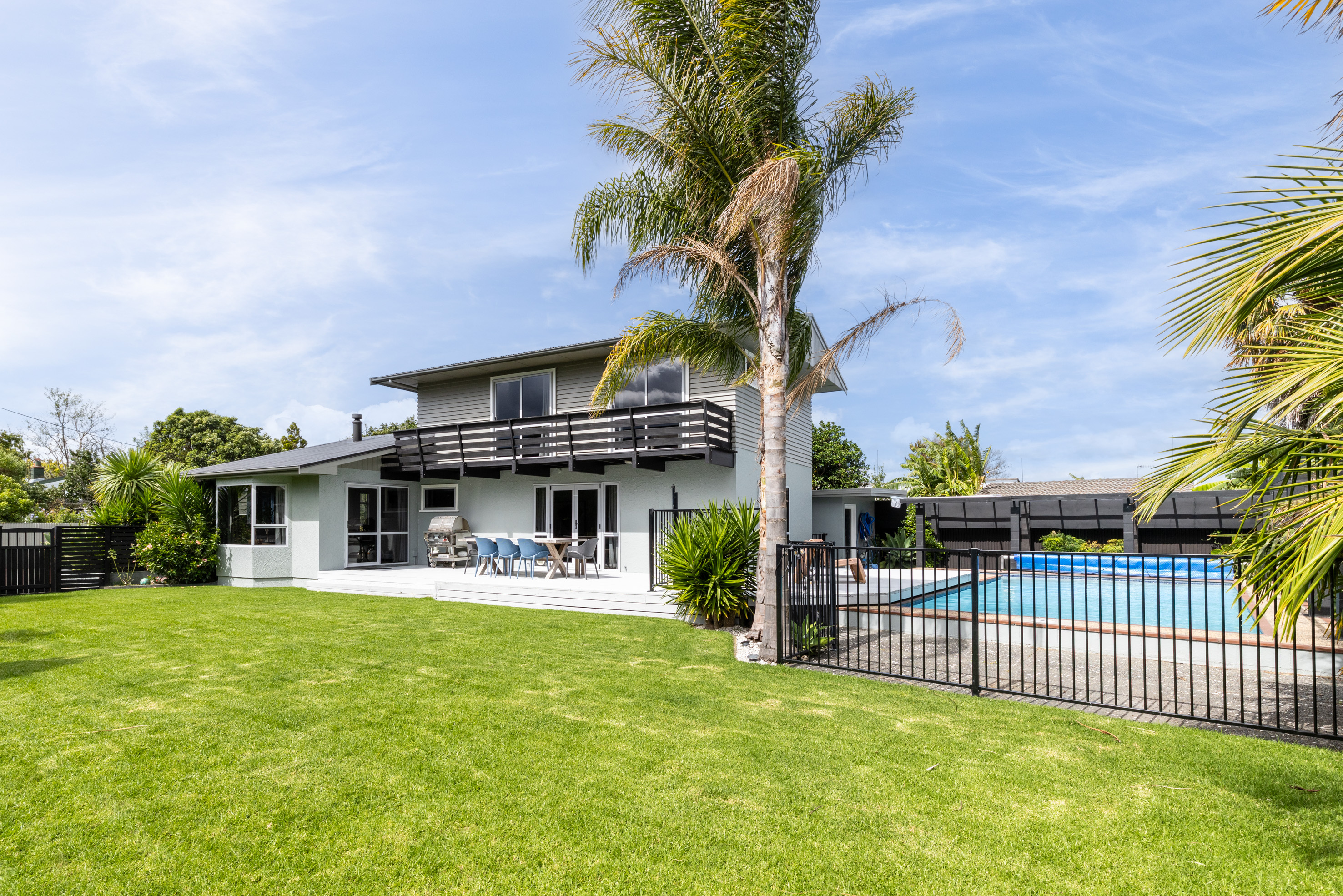 This is family living done right! At the centre of it all is a modern kitchen, packed with storage and complemented by a generous double pantry where everything has its place. It flows seamlessly into a separate dining room, perfect for shared meals and celebrations, while the family room offers space for everyone to unwind - whether it's kids with friends over or a relaxed night in. From the second spacious living area, slide open the two sets of doors and discover where this home truly shines. One side opens to a large deck overlooking a wide, flat lawn - ideal for backyard cricket, trampolines, and birthday parties. The other leads to a sparkling blue inground saltwater pool, framed by expansive decking and lush tropical gardens, complete with its own changing room. Long afternoons outdoors? Absolutely. Upstairs, three bedrooms are serviced by a tidy family bathroom and separate toilet, with two rooms opening directly onto a balcony capturing views of the Taradale hills. A separate office keeps work and family life running smoothly. Downstairs, a stunning tiled bathroom, second toilet, and separate laundry ensure the practicalities are well and truly covered. With full double glazing, two heat pumps, and a cosy wood burner, comfort is guaranteed year-round. The large garage has been thoughtfully configured into two separate hobby rooms, offering flexibility for working from home, a teenage retreat, creative space, or easily reconfiguring to house the toys. A generous garden shed adds even more room for tools and weekend projects - because you can never have too much storage. Set in a prime Avenue Road location, within walking distance to Greenmeadows Primary School and zoned for Taradale Intermediate and Taradale High School, this is a home that truly works for the whole family - offering space to come together and room for everyone to enjoy their own corner, inside and out. For more information or to arrange a private viewing, call us today - or join us at the open home this Sunday.