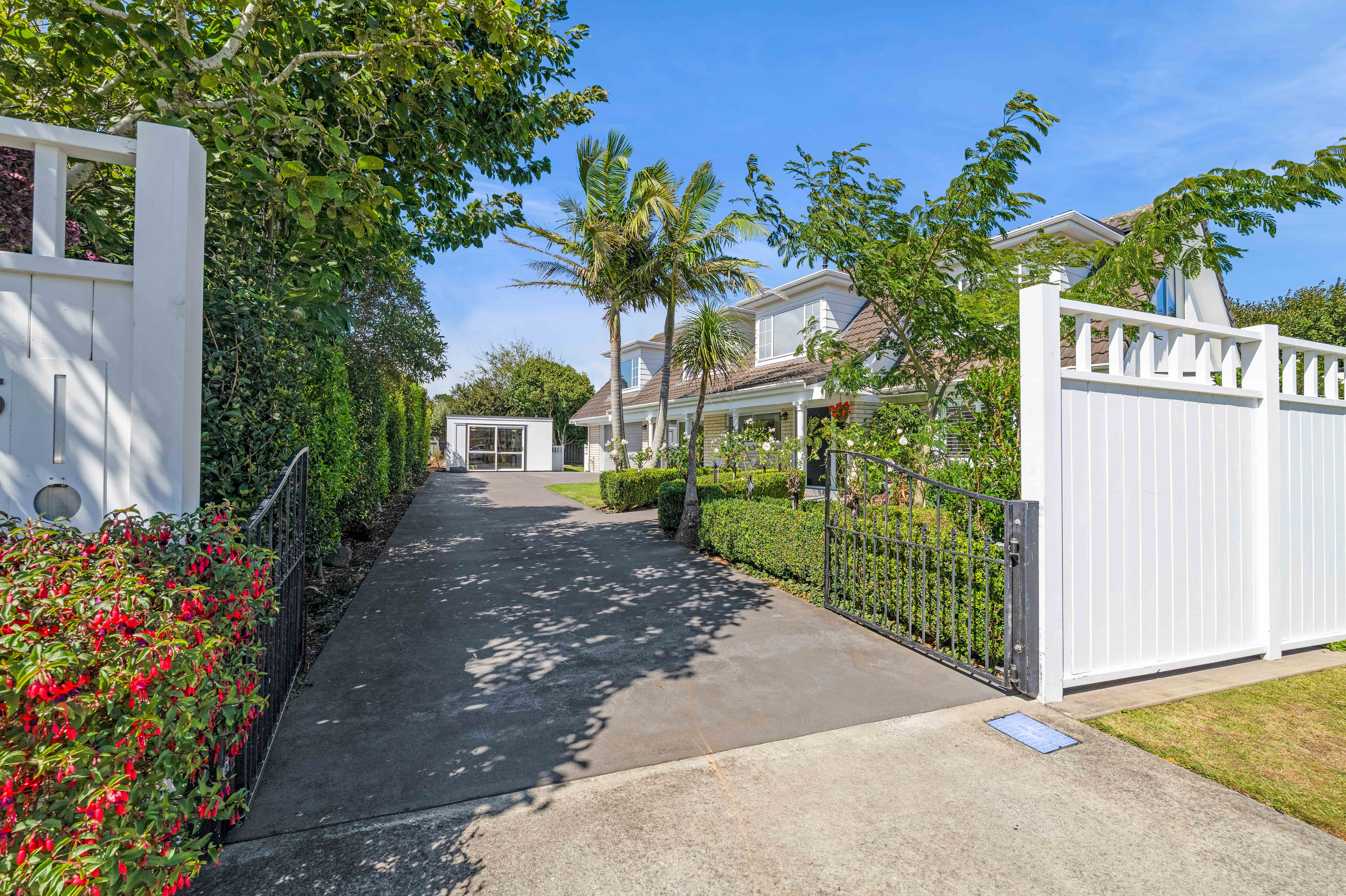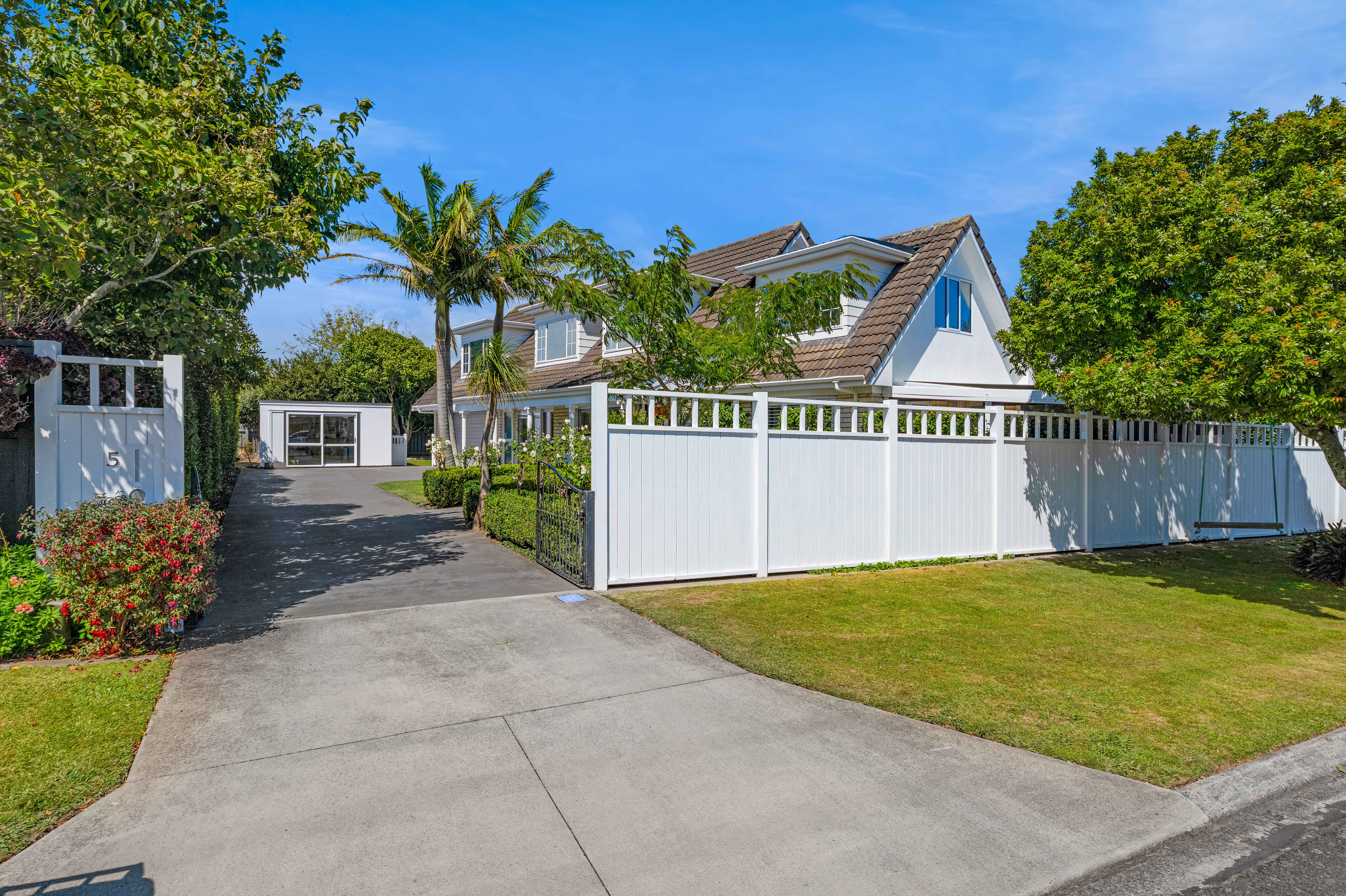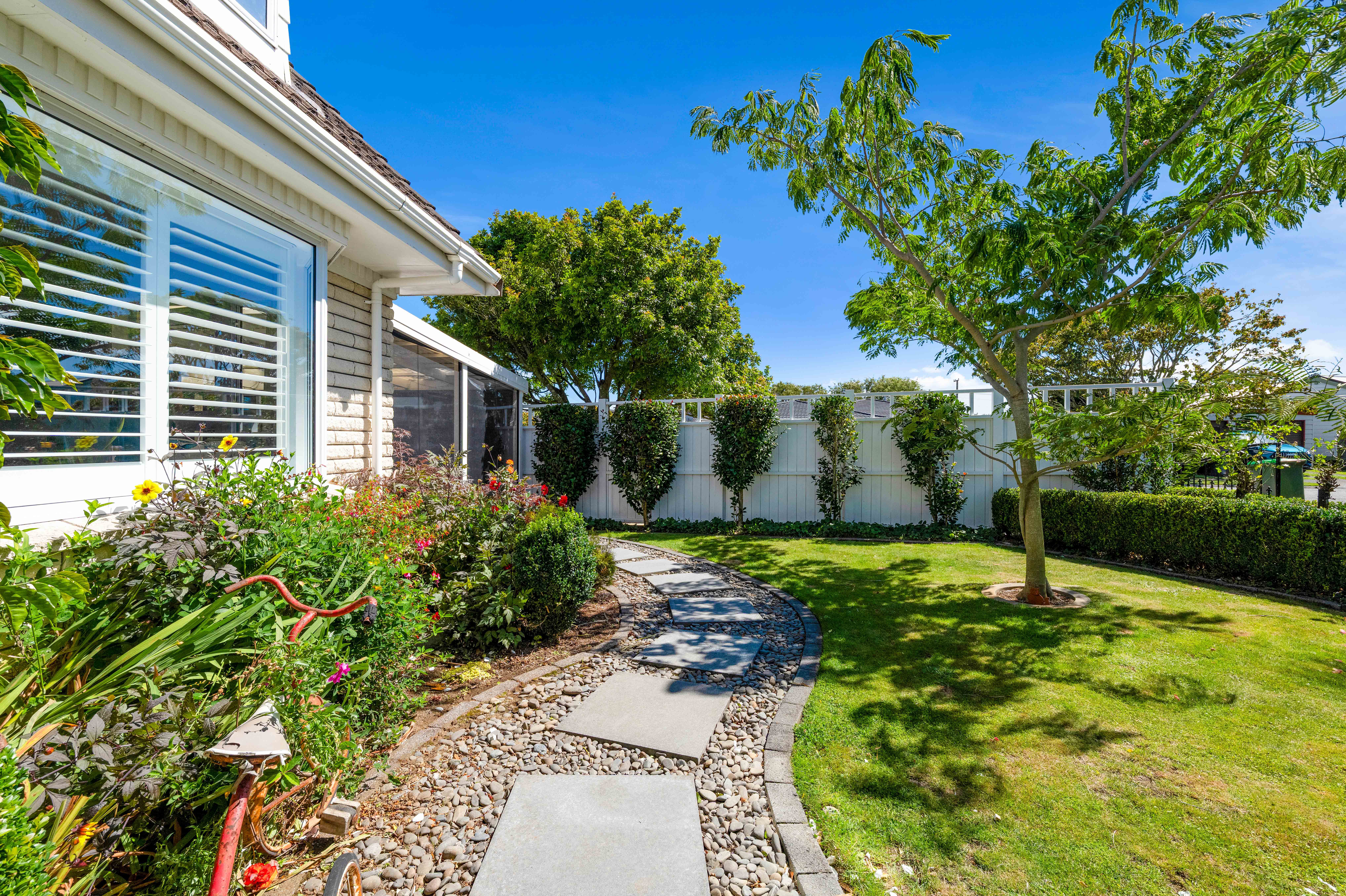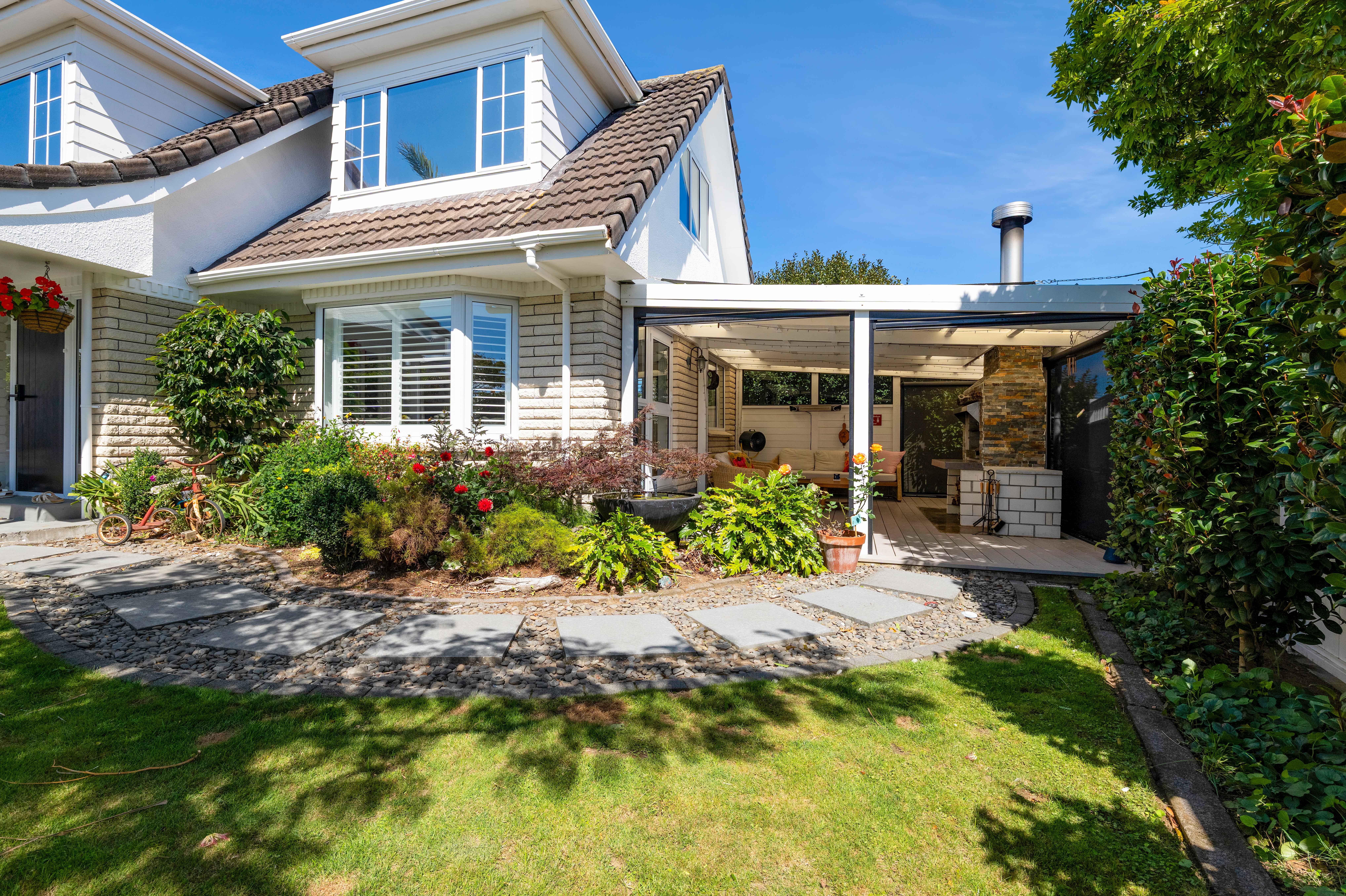 Configured as five bedrooms (or four plus an office), this home offers flexibility for families. The separate main lounge opens to a covered patio with a near new outdoor fireplace, creating a perfect year-round space for relaxing and entertaining, while a second, smaller lounge provides valuable extra living. Comfort is covered with the downstairs being mostly double glazed, tinted upstairs windows for privacy, three heat pumps and gas infinity hot water. Keyless entry, a Philips Hue smart lighting system and a convenient laundry chute add ease to everyday living. Both the bathroom and ensuite have underfloor heating, the main bathroom includes a spa bath and the master bedroom is complemented by his-and-hers wardrobes. The internal access double garage also includes an additional shower. An added bonus is the standalone separate outbuilding (formerly a small commercial kitchen, it has a hot water cylinder and grease trap). This could make an ideal workshop, rumpus or hobby space. Manicured gardens frame the home and the landscaped Bestway above ground pool promises lots of summer family fun. All of this is set in a sought-after location, zoned for Welbourn Primary and Highlands Intermediate, and just a short distance to Merrilands shops, supermarket and Merrilands Domain.