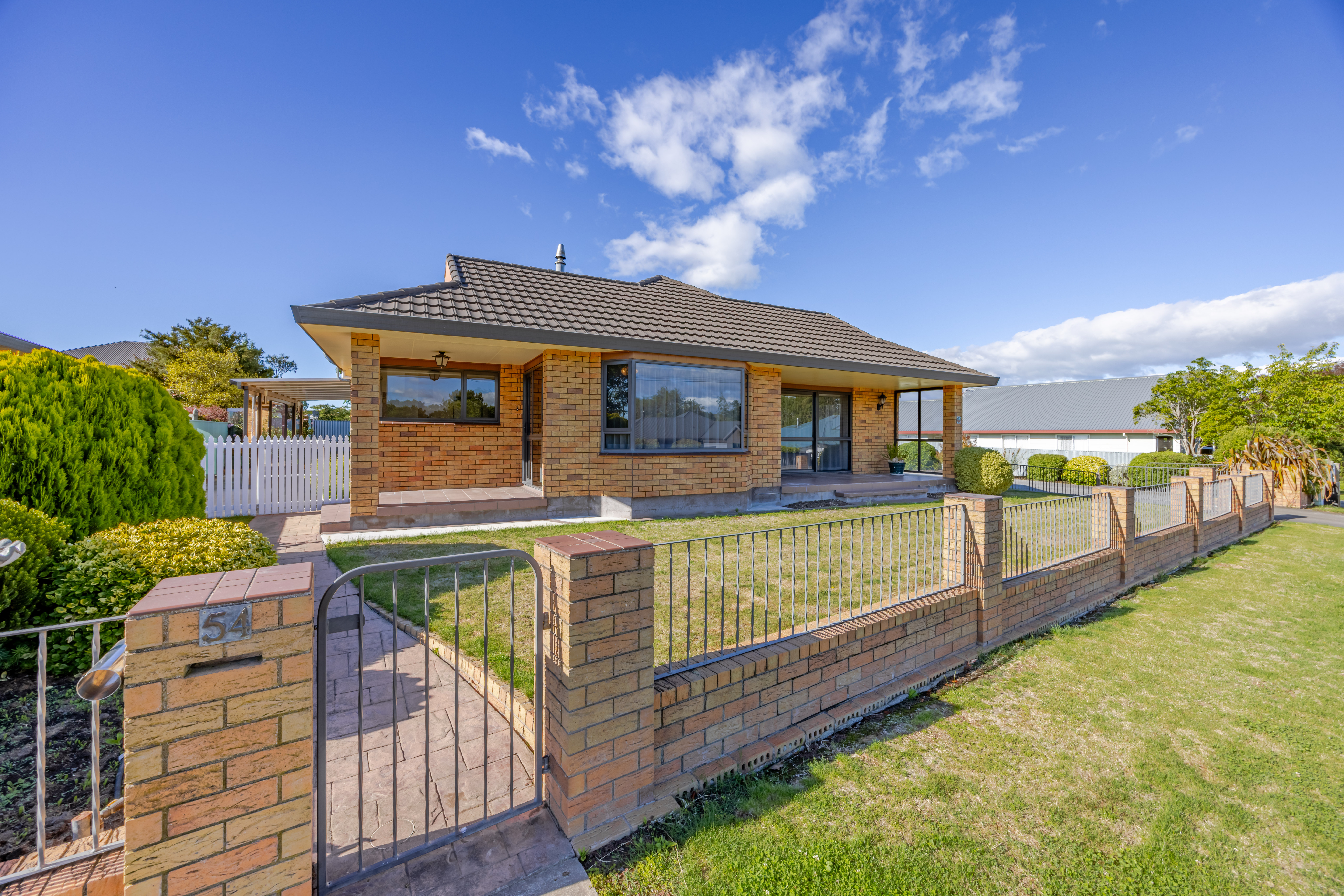 This well-designed three-bedroom, two-bathroom brick home offers space, comfort, and options for every stage of life. At the heart of the home is the open-plan kitchen and dining area, flowing effortlessly into a semi open-plan living room — perfect for everyday living and entertaining alike. From the living spaces, enjoy seamless indoor-outdoor flow to not one, but two patios, while the covered outdoor BBQ area off the dining room creates the ideal spot for year-round gatherings. With additional access from the laundry, practicality is thoughtfully woven into the layout. Comfort is assured with multiple heating options including heat pumps, a wood burner, ceiling fans, and a ventilation system, all complemented by double glazing and full insulation for year-round efficiency. The home also features a single internal-access garage with extra storage, while the real standout is the separate double garage with a fully permitted flat attached. Complete with its own bathroom, washhouse, kitchenette, living space, and single-bed inlet, this is an exceptional option for multi-generational living, guests, or that teenager craving independence. Adding to the appeal is the unbeatable convenience of the location. Positioned within easy walking distance to town, you’ll love having local amenities right at your doorstep — including schools, supermarkets, and a range of extracurricular activities. Whether it’s bowls, tennis, or the nearby sports fields, an active and connected lifestyle is well and truly catered for. Set on a fully fenced section with established landscaping, garden sheds, and street frontage, this property offers both privacy and practicality in equal measure. A versatile home offering space, comfort, and lifestyle convenience — this is one you’ll want to experience in person.