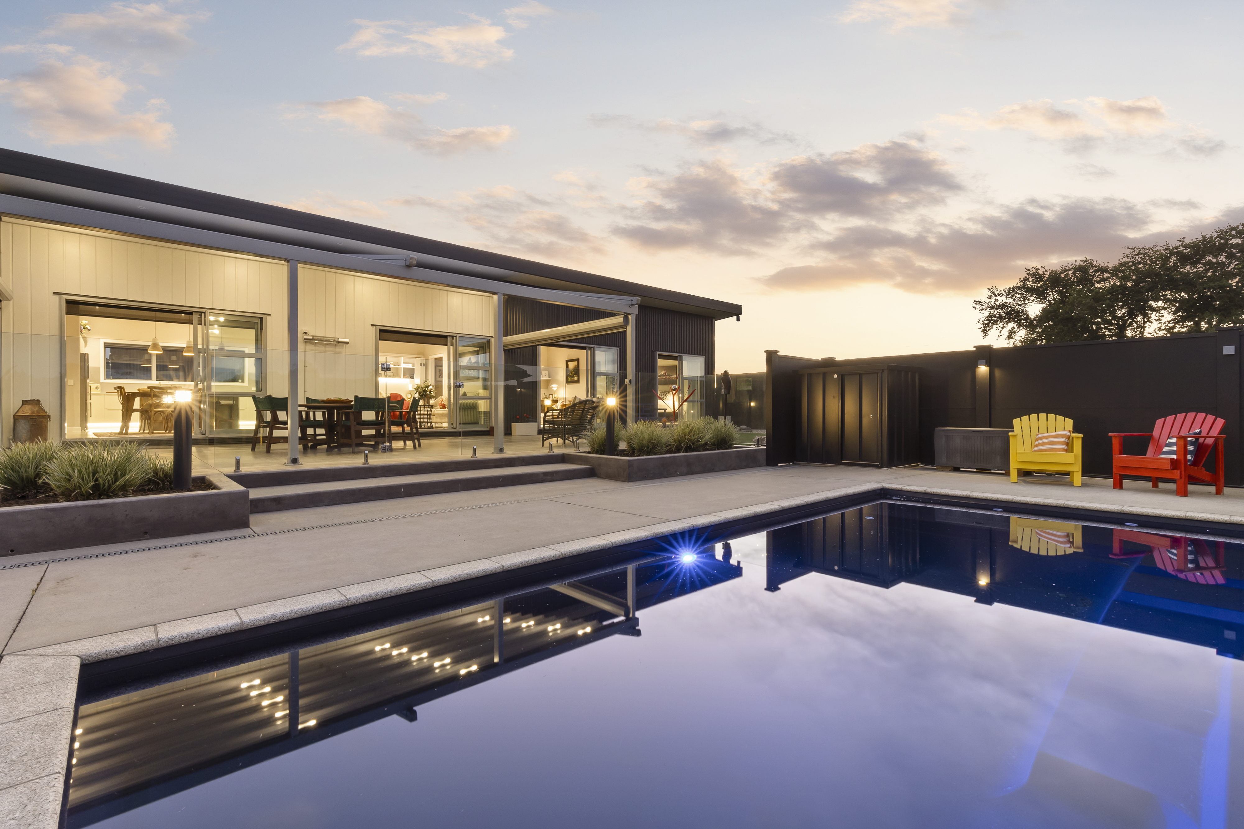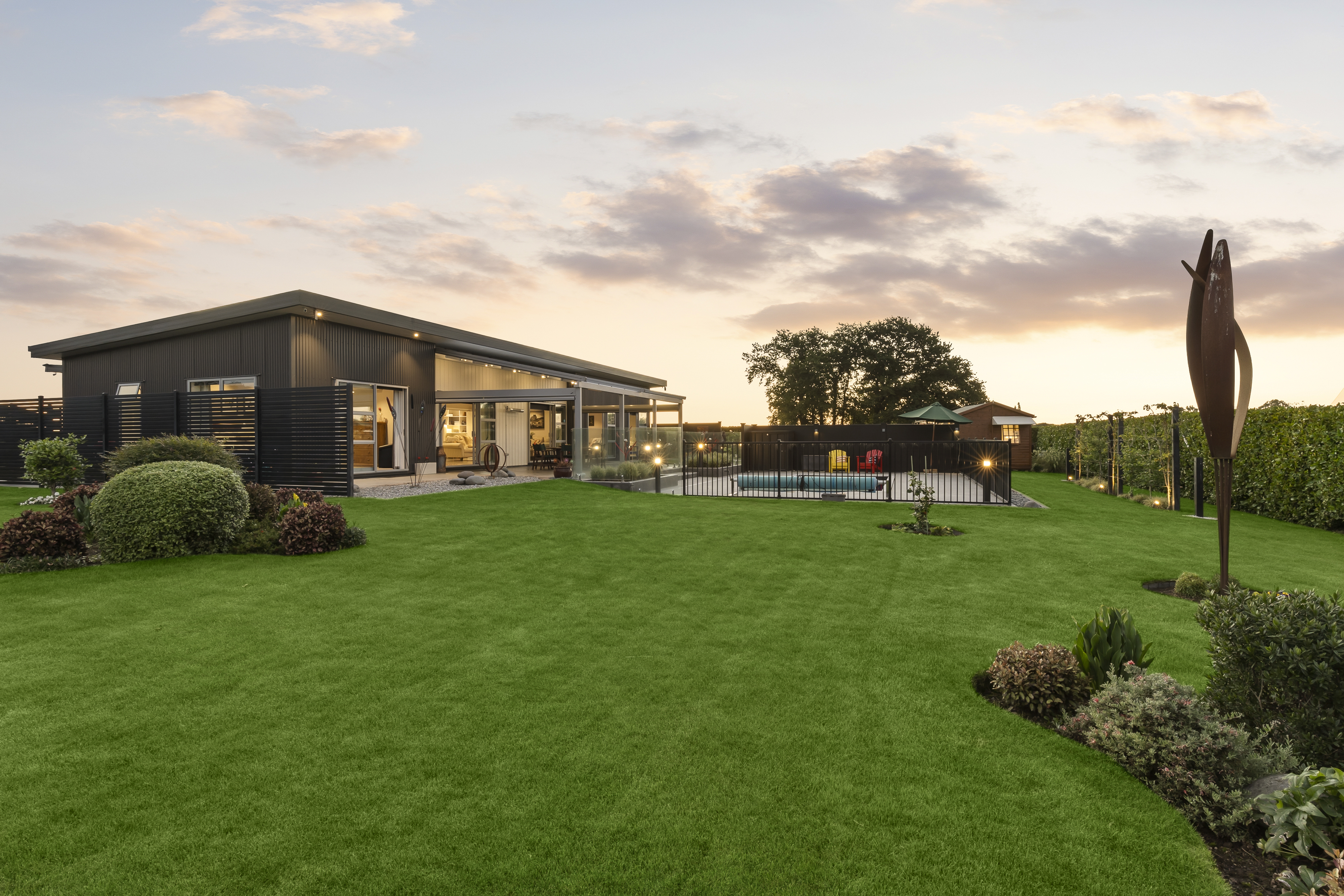 Perfectly positioned just minutes from Cambridge township, close to Lake Karapiro, and surrounded by some of New Zealand's finest thoroughbred studs, this immaculate property offers a rare blend of style, privacy, and lifestyle appeal. Set on a beautifully landscaped 2,750 sqm section, the grounds are a tranquil oasis with an eclectic array of mature trees, shrubs, and flowers. At its heart sits an architecturally designed 236 sqm home, where attention to detail and quality craftsmanship are evident at every turn. Designed for sun and flow, the home features high raked ceilings and a seamless connection between indoor and outdoor living zones. Entertain with ease across alfresco courtyards, BBQ areas, and the heated inground saltwater pool-perfect for extending your swimming season. Step inside via the generous entrance hallway into open-plan living, dining, and kitchen spaces, anchored by polished concrete floors. The entertainer's kitchen boasts a large central island, stone benchtops, quality appliances, and statement lighting-combining both function and flair. A separate formal lounge provides a peaceful retreat, basking in all-day sun. Accommodation includes three spacious bedrooms, with the master suite privately positioned in its own wing. This parents' retreat features garden and countryside views, large sliding doors, a walk-in dressing room, and a luxurious ensuite. The additional bedrooms are complemented by a sleek modern family bathroom and a separate guest powder room, both with underfloor heating and heated towel rails. Additional features include: - Log cabin/hobby room - Large study nook with bi-fold doors for privacy - Living flame gas fire, heat pumps, double glazing, and extra insulation for year-round comfort - Internally accessed double garage with carpet, extra-high doors, integrated laundry, and gardener's toilet This property is the epitome of modern lifestyle living-private, stylish, and designed for both entertaining and relaxation.