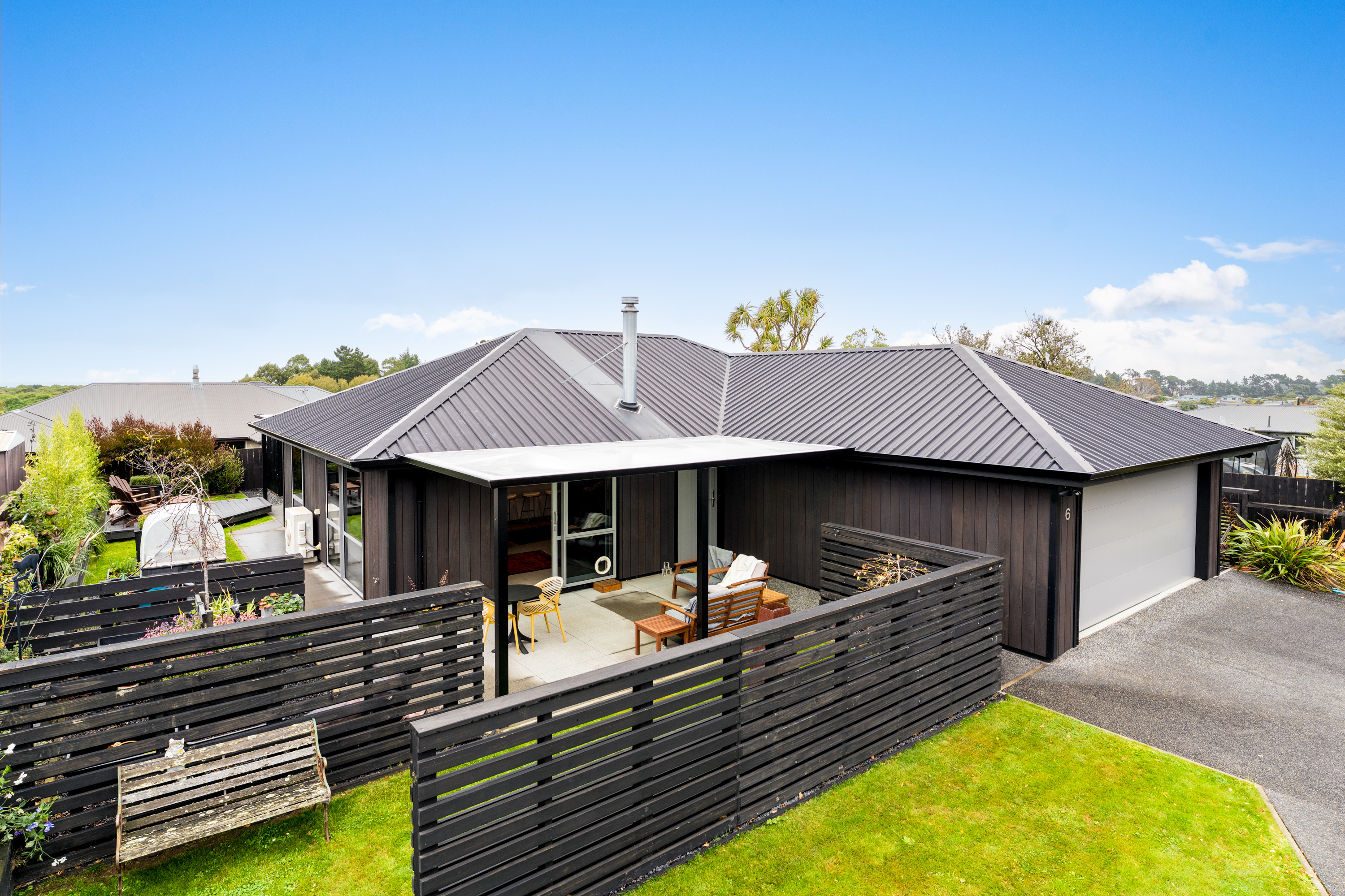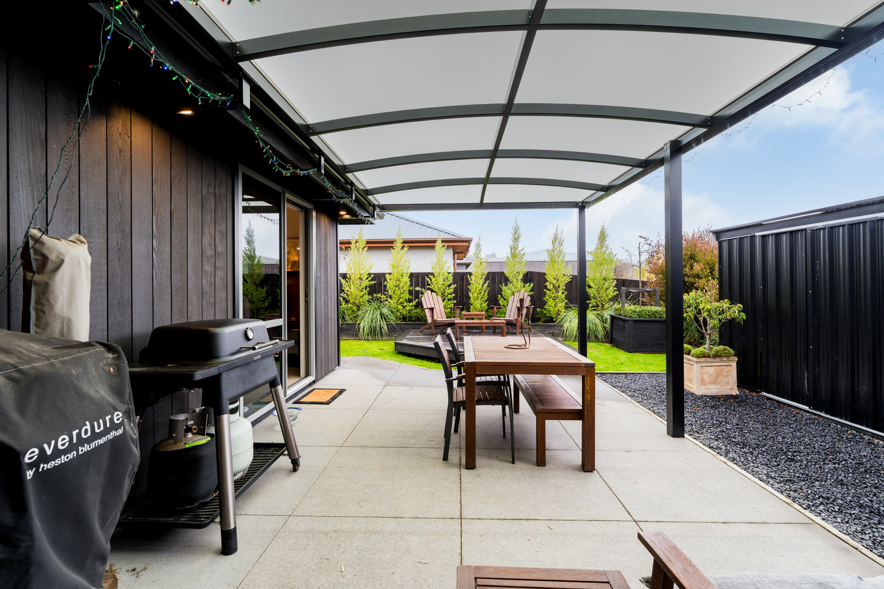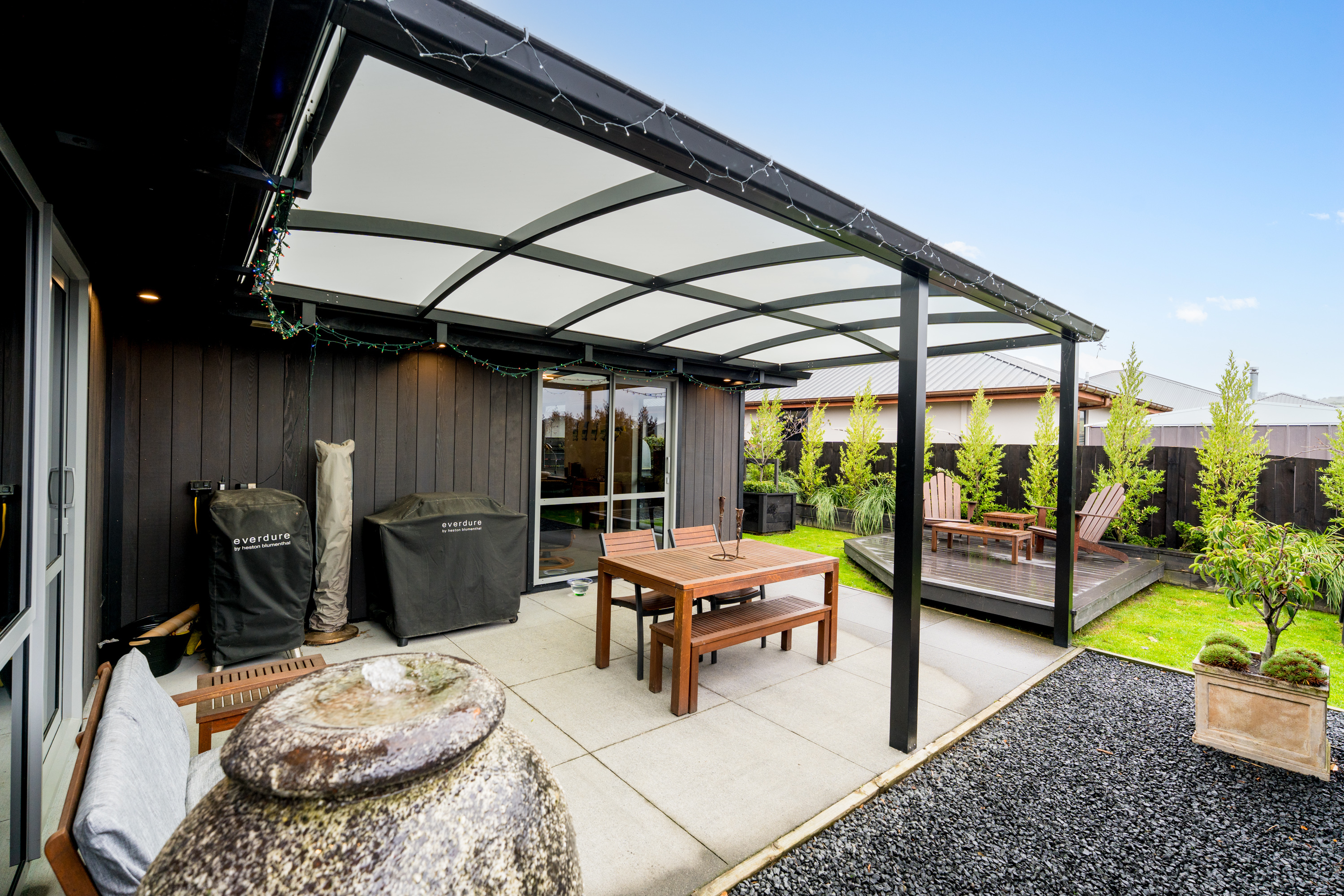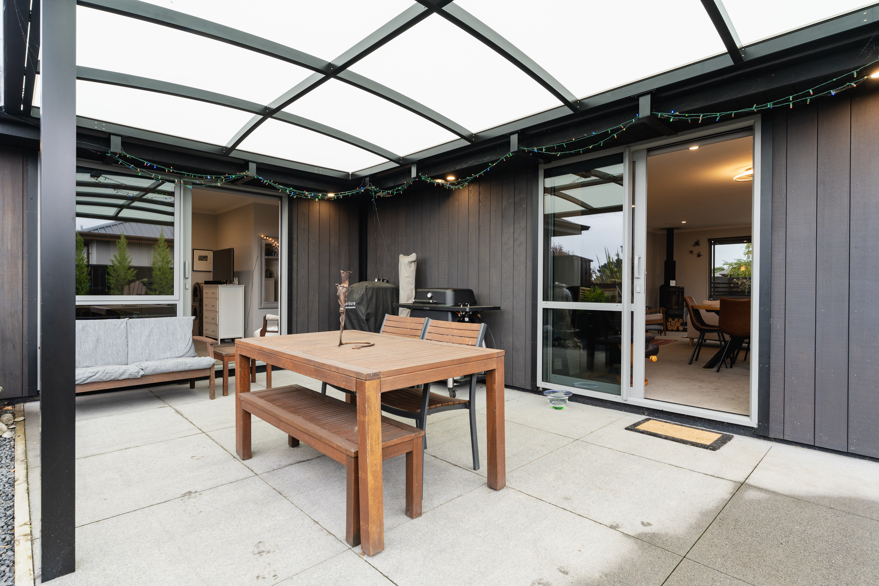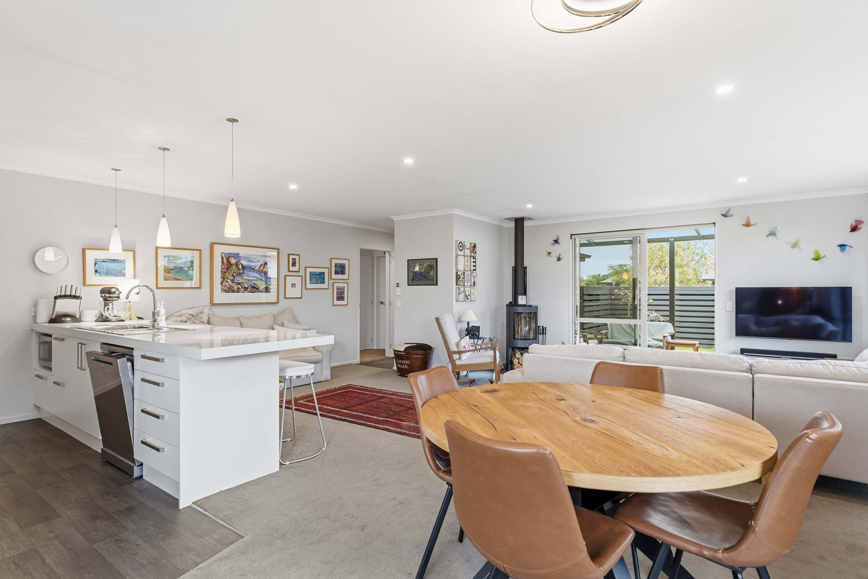 What a fabulous find in the wonderful community of Waldronville. Set in a quiet cul-de-sac of modern homes, you can immediately see the love and care that has been put into this beautifully presented property. The entrance with privacy screening flows into a spacious open plan living area that is light and bright. This room has been well considered to offer versatile indoor/outdoor living, from here you can access both a north facing covered patio and also a rear covered patio, perfect for entertainers and making the most of the warm months. The cooler times are also catered for with double glazing, a log burner plus heat pump. With flexibility of use for both lounging and dining this space also offers a generous kitchen with island bar and top-quality appliances. Off the hallway, you access three double bedrooms, the master suite with a door providing direct access to the patio, en-suite and walk in wardrobe complete with chandelier and a heater, a real treat for dressing in winter. The family bathroom has both bath and shower and the double garage is a cosy space for pets or tinkerers with a carpeted floor and heat pump! The 537m2 section has been thoughtfully landscaped to offer privacy, ease of care while being attractive and productive. Privacy screening is perfectly placed and along with the covered patios, there is a deck for the sun lovers. Lovely plantings surround you and the espaliered fruit trees are abundant with fruit while not taking up a lot of room. Two garden sheds add to the storage. The friendly community offers easy walks to the beach or the golf course. This home really does offer all the extras in a lovely location.