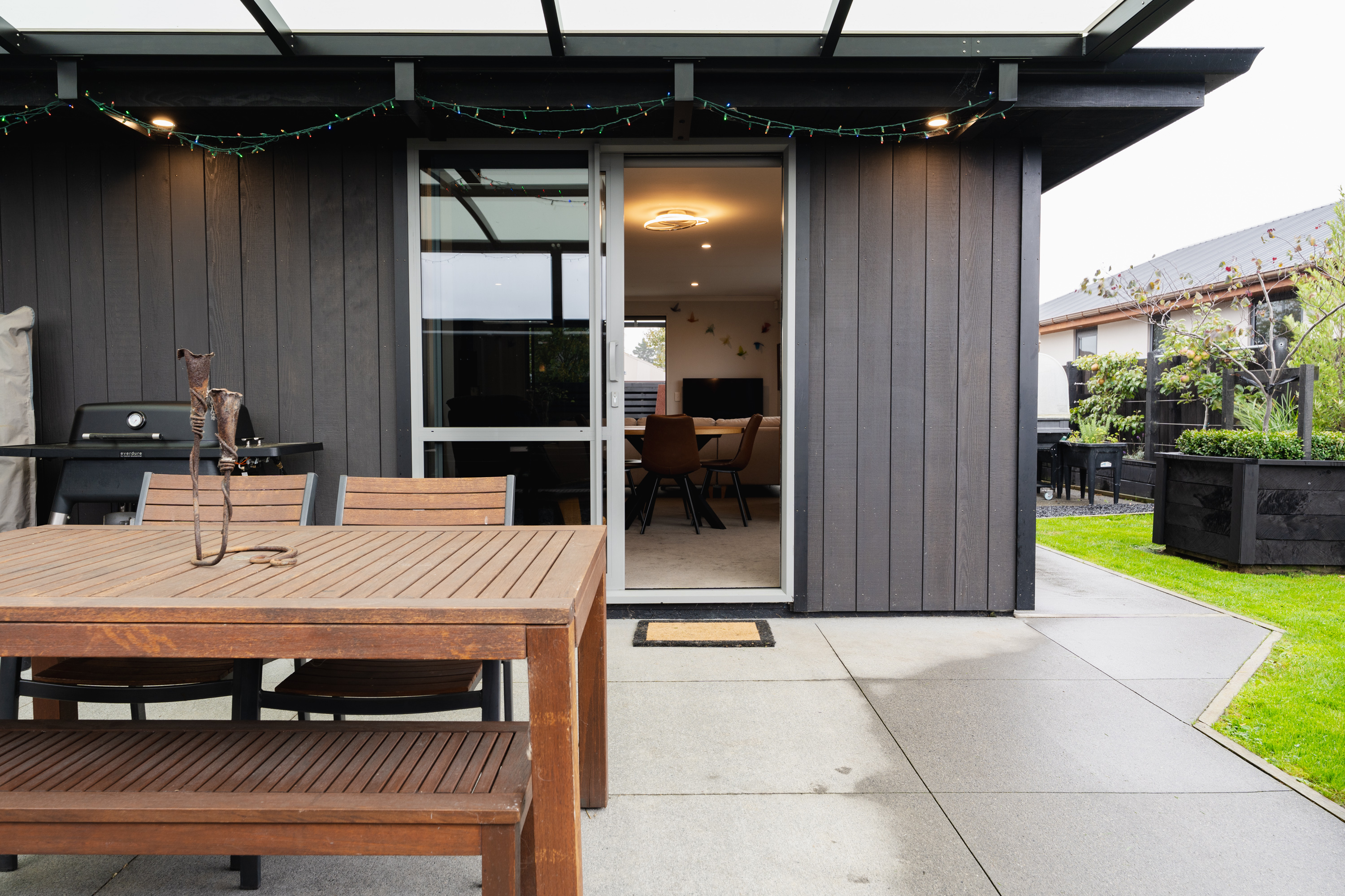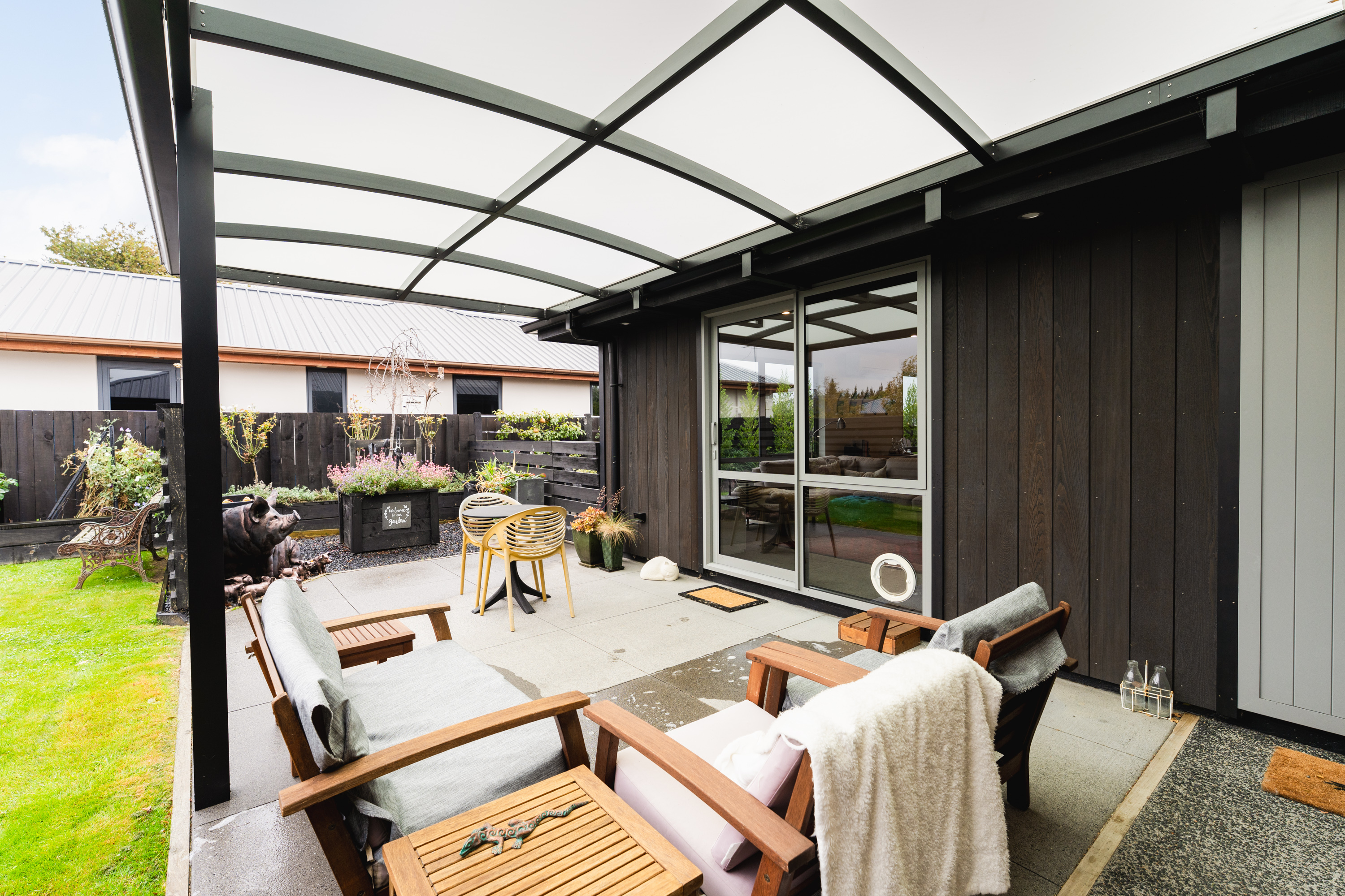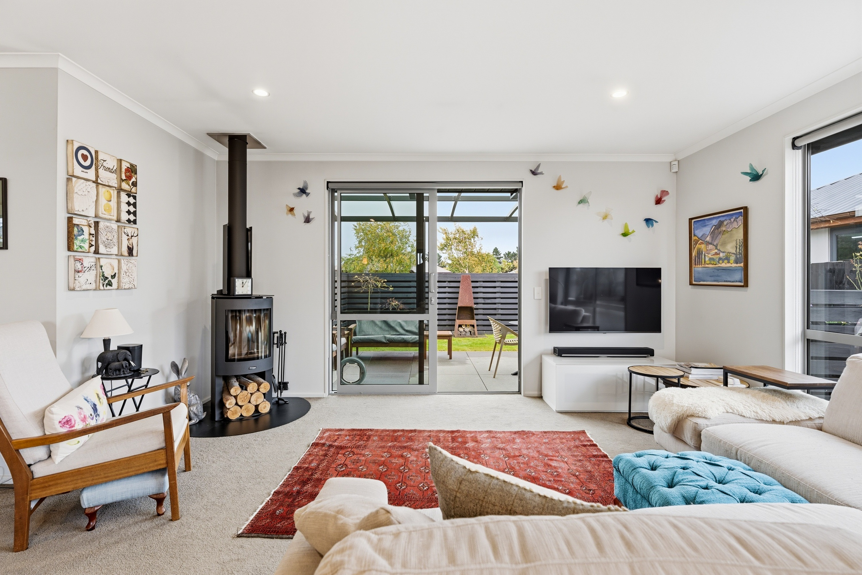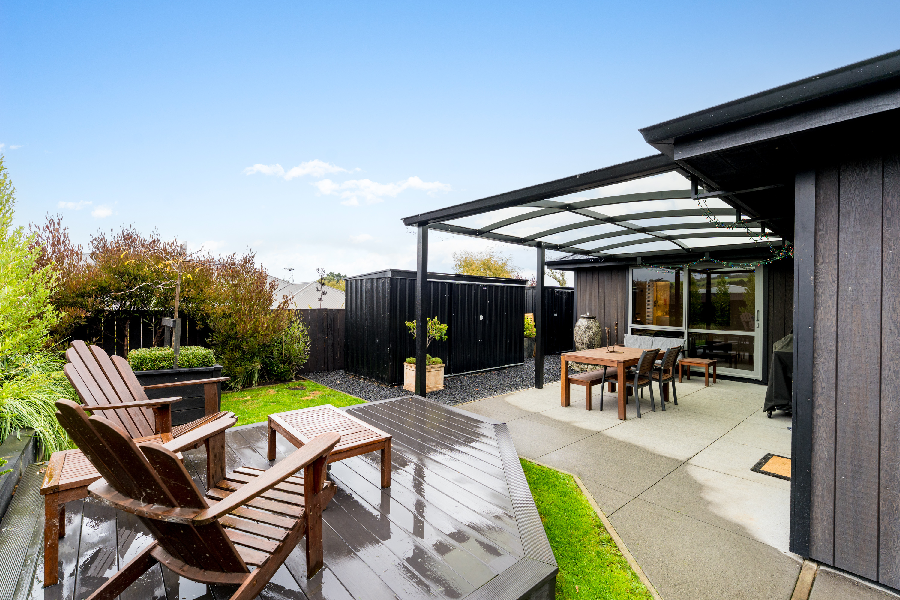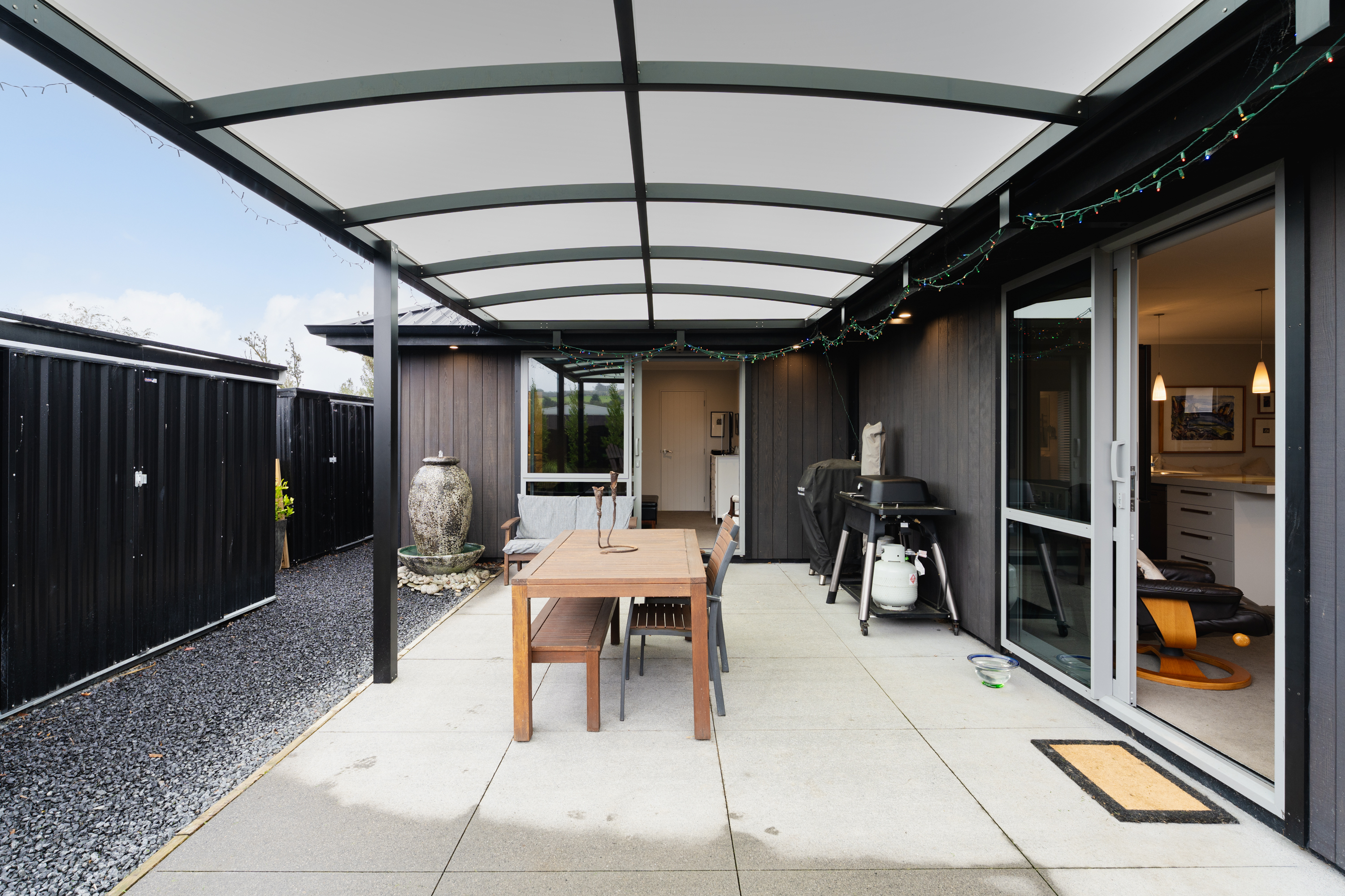What a fabulous find in the wonderful community of Waldronville. Set in a quiet cul-de-sac of modern homes, you can immediately see the love and care that has been put into this beautifully presented property. The entrance with privacy screening flows into a spacious open plan living area that is light and bright. This room has been well considered to offer versatile indoor/outdoor living, from here you can access both a north facing covered patio and also a rear covered patio, perfect for entertainers and making the most of the warm months. The cooler times are also catered for with double glazing, a log burner plus heat pump. With flexibility of use for both lounging and dining this space also offers a generous kitchen with island bar and top-quality appliances. Off the hallway, you access three double bedrooms, the master suite with a door providing direct access to the patio, en-suite and walk in wardrobe complete with chandelier and a heater, a real treat for dressing in winter. The family bathroom has both bath and shower and the double garage is a cosy space for pets or tinkerers with a carpeted floor and heat pump! The 537m2 section has been thoughtfully landscaped to offer privacy, ease of care while being attractive and productive. Privacy screening is perfectly placed and along with the covered patios, there is a deck for the sun lovers. Lovely plantings surround you and the espaliered fruit trees are abundant with fruit while not taking up a lot of room. Two garden sheds add to the storage. The friendly community offers easy walks to the beach or the golf course. This home really does offer all the extras in a lovely location.