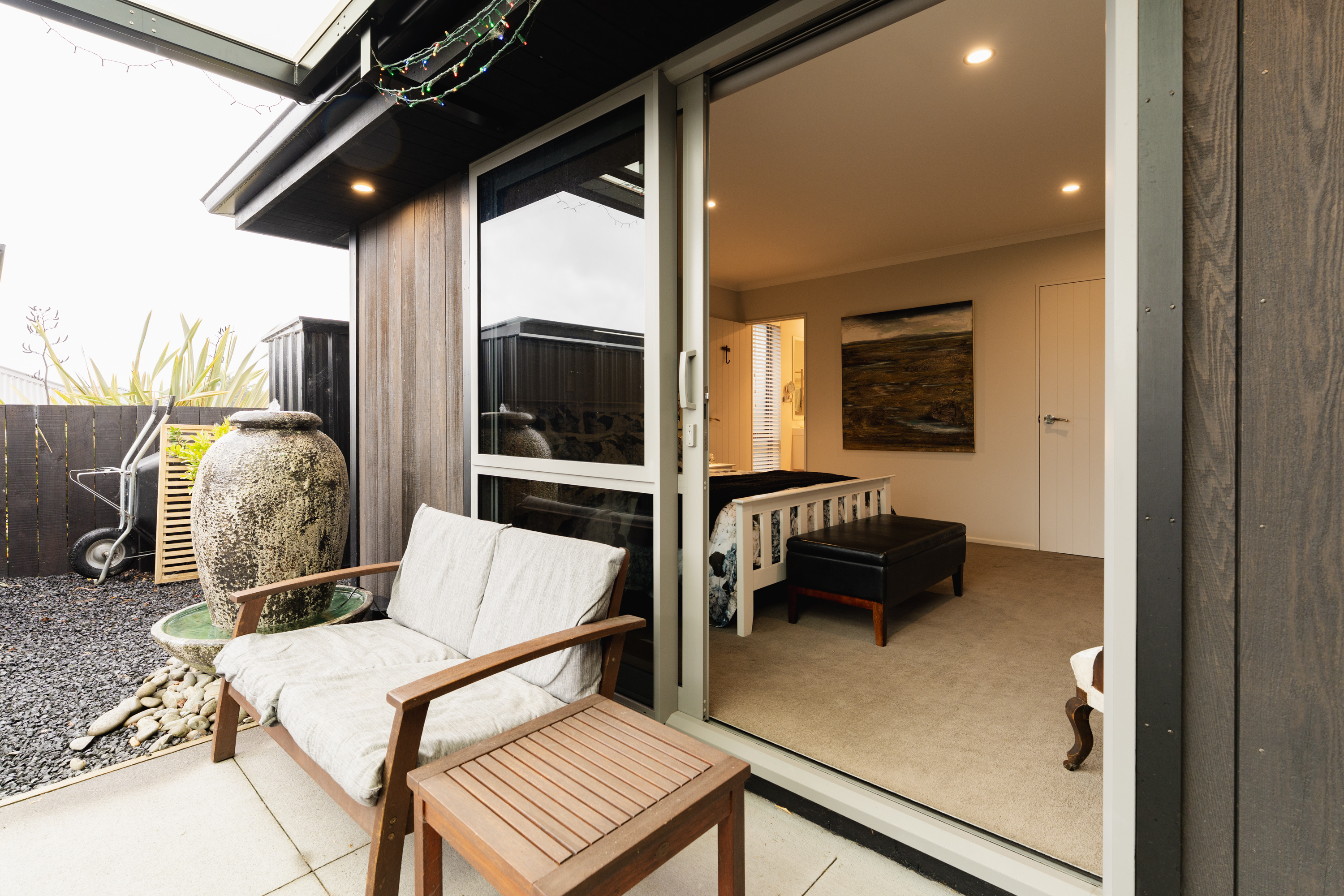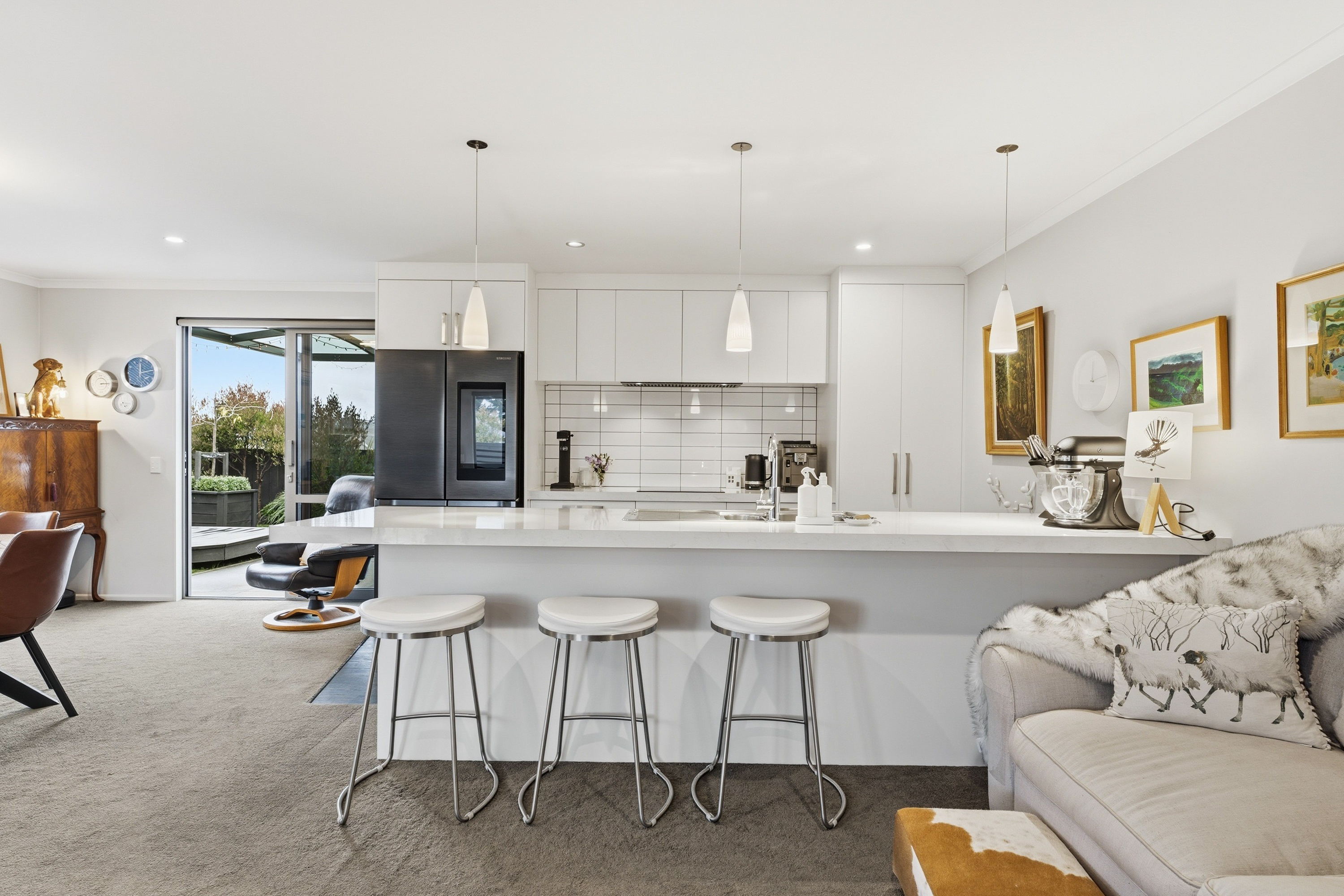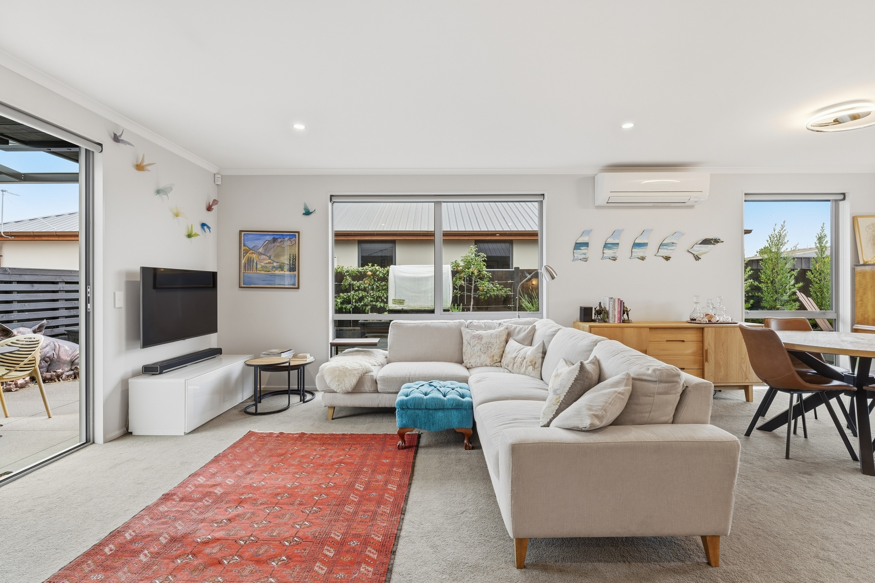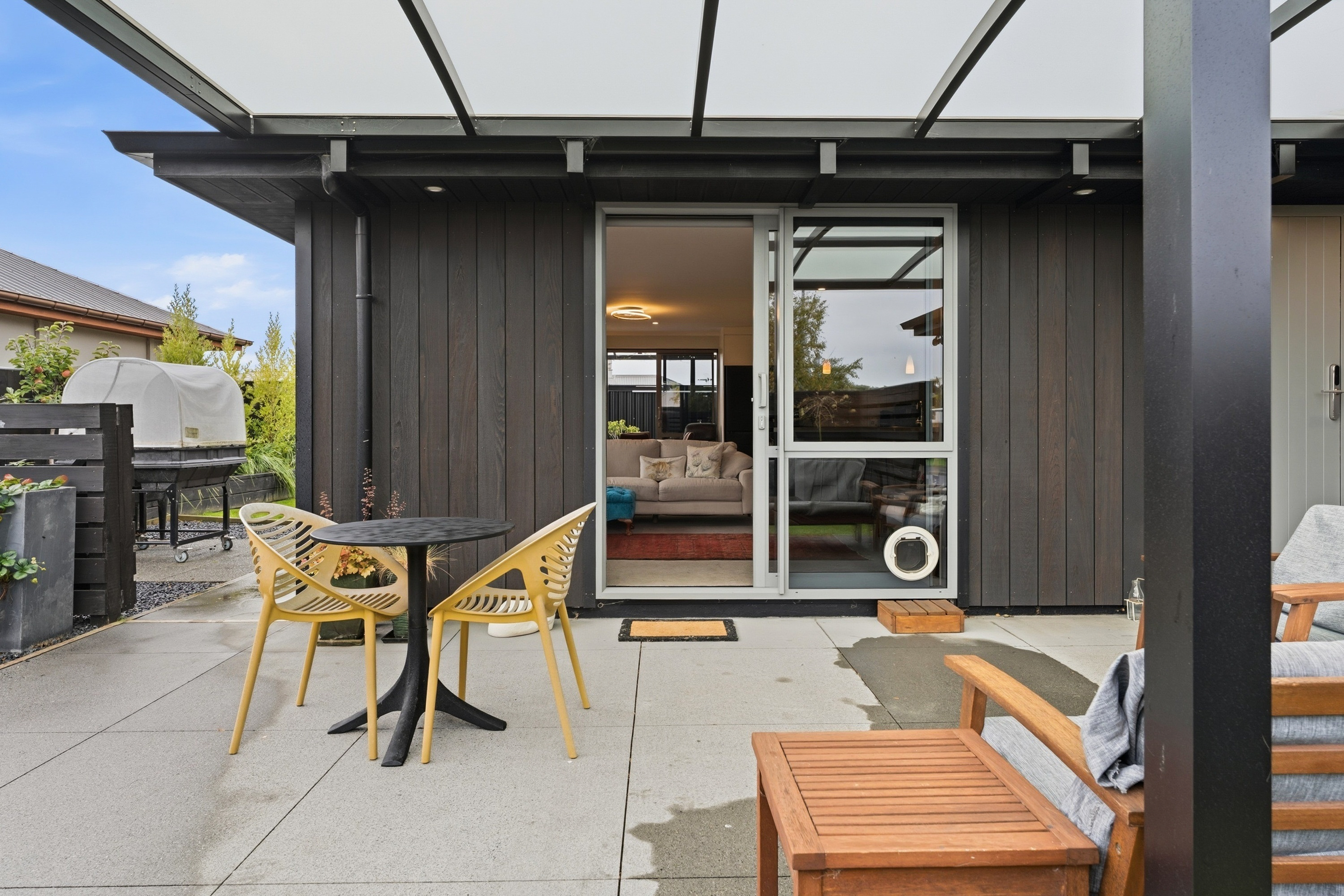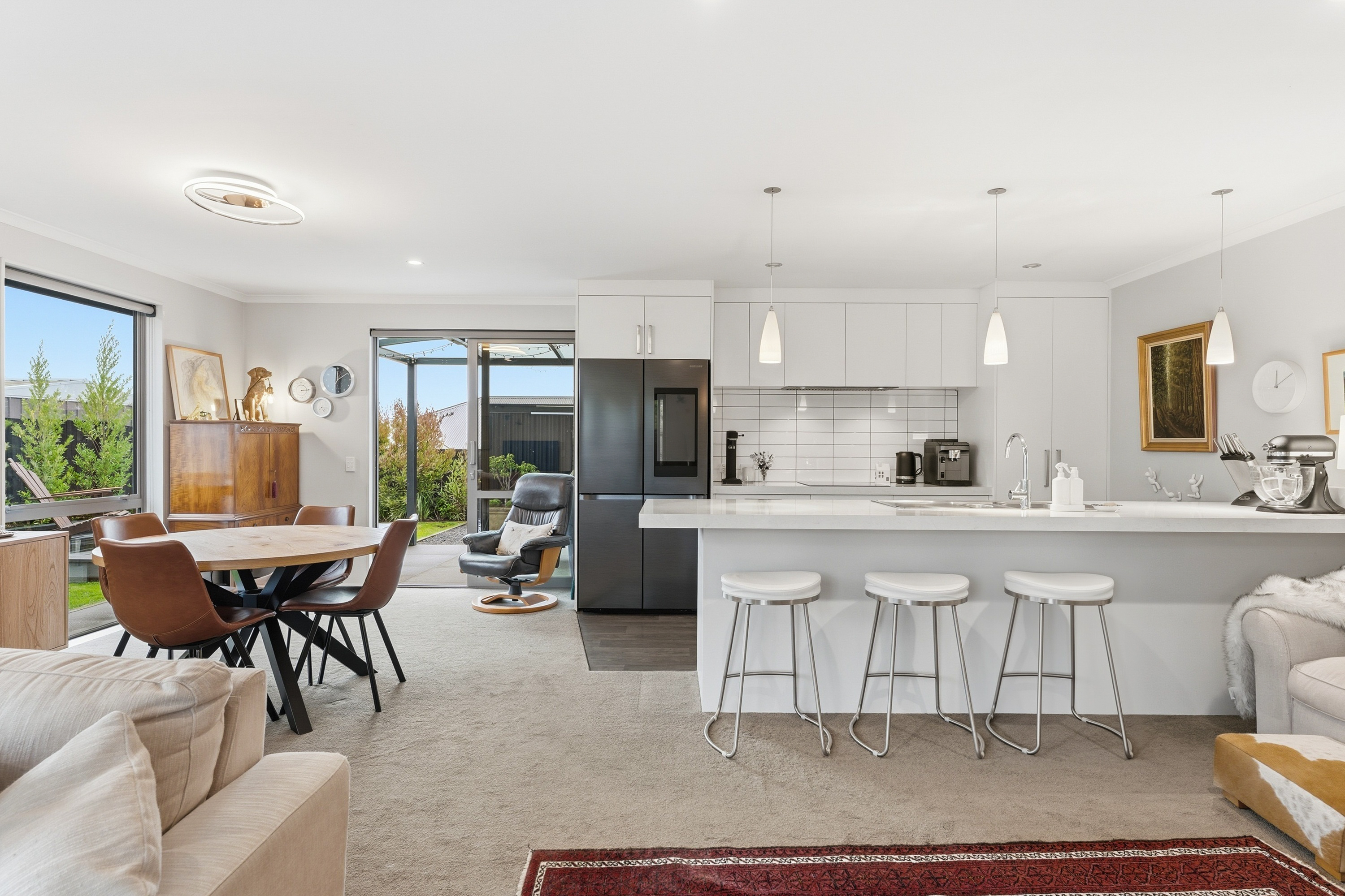 What a fabulous find in the wonderful community of Waldronville. Set in a quiet cul-de-sac of modern homes, you can immediately see the love and care that has been put into this beautifully presented property. The entrance with privacy screening flows into a spacious open plan living area that is light and bright. This room has been well considered to offer versatile indoor/outdoor living, from here you can access both a north facing covered patio and also a rear covered patio, perfect for entertainers and making the most of the warm months. The cooler times are also catered for with double glazing, a log burner plus heat pump. With flexibility of use for both lounging and dining this space also offers a generous kitchen with island bar and top-quality appliances. Off the hallway, you access three double bedrooms, the master suite with a door providing direct access to the patio, en-suite and walk in wardrobe complete with chandelier and a heater, a real treat for dressing in winter. The family bathroom has both bath and shower and the double garage is a cosy space for pets or tinkerers with a carpeted floor and heat pump! The 537m2 section has been thoughtfully landscaped to offer privacy, ease of care while being attractive and productive. Privacy screening is perfectly placed and along with the covered patios, there is a deck for the sun lovers. Lovely plantings surround you and the espaliered fruit trees are abundant with fruit while not taking up a lot of room. Two garden sheds add to the storage. The friendly community offers easy walks to the beach or the golf course. This home really does offer all the extras in a lovely location.
