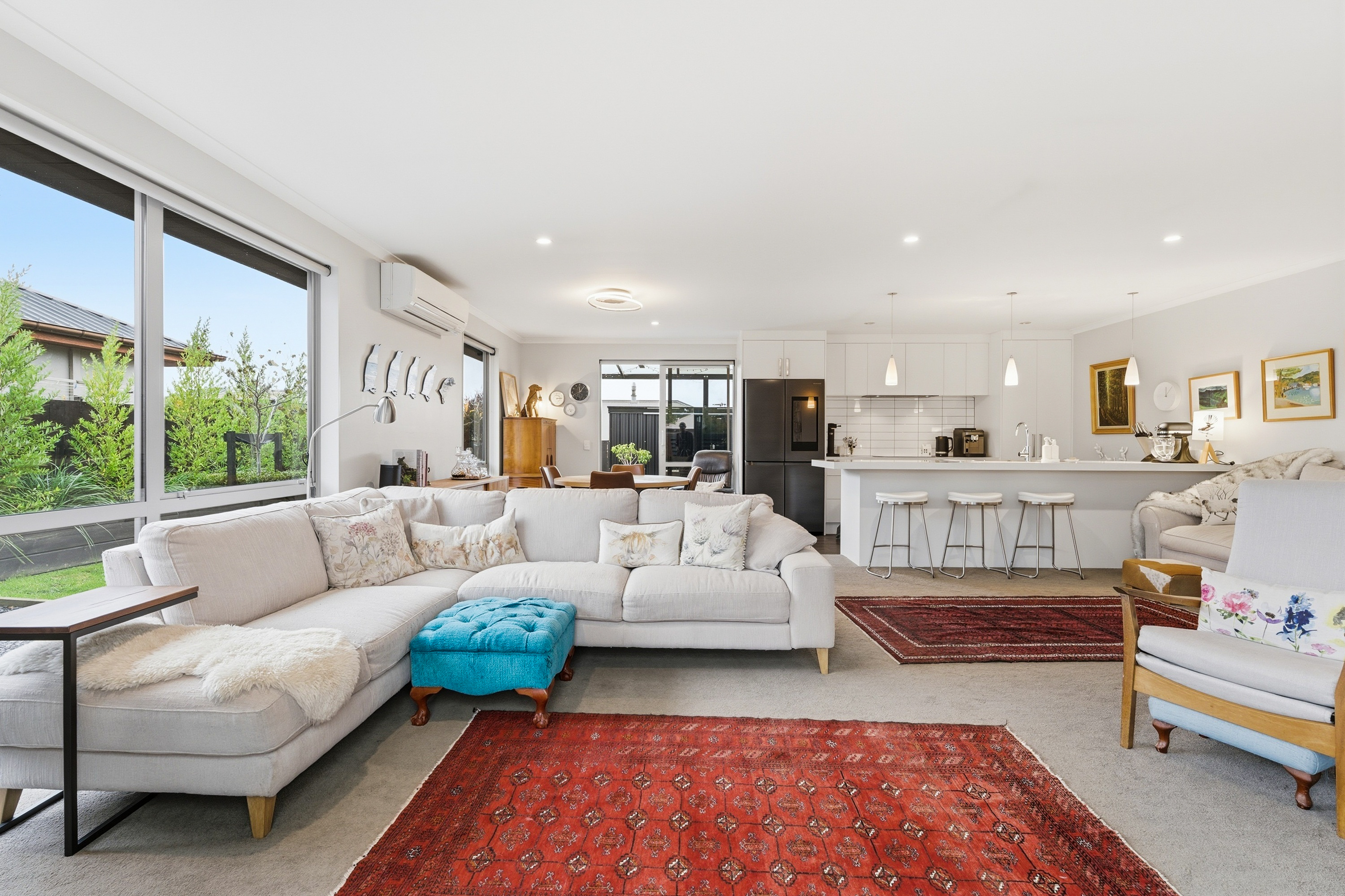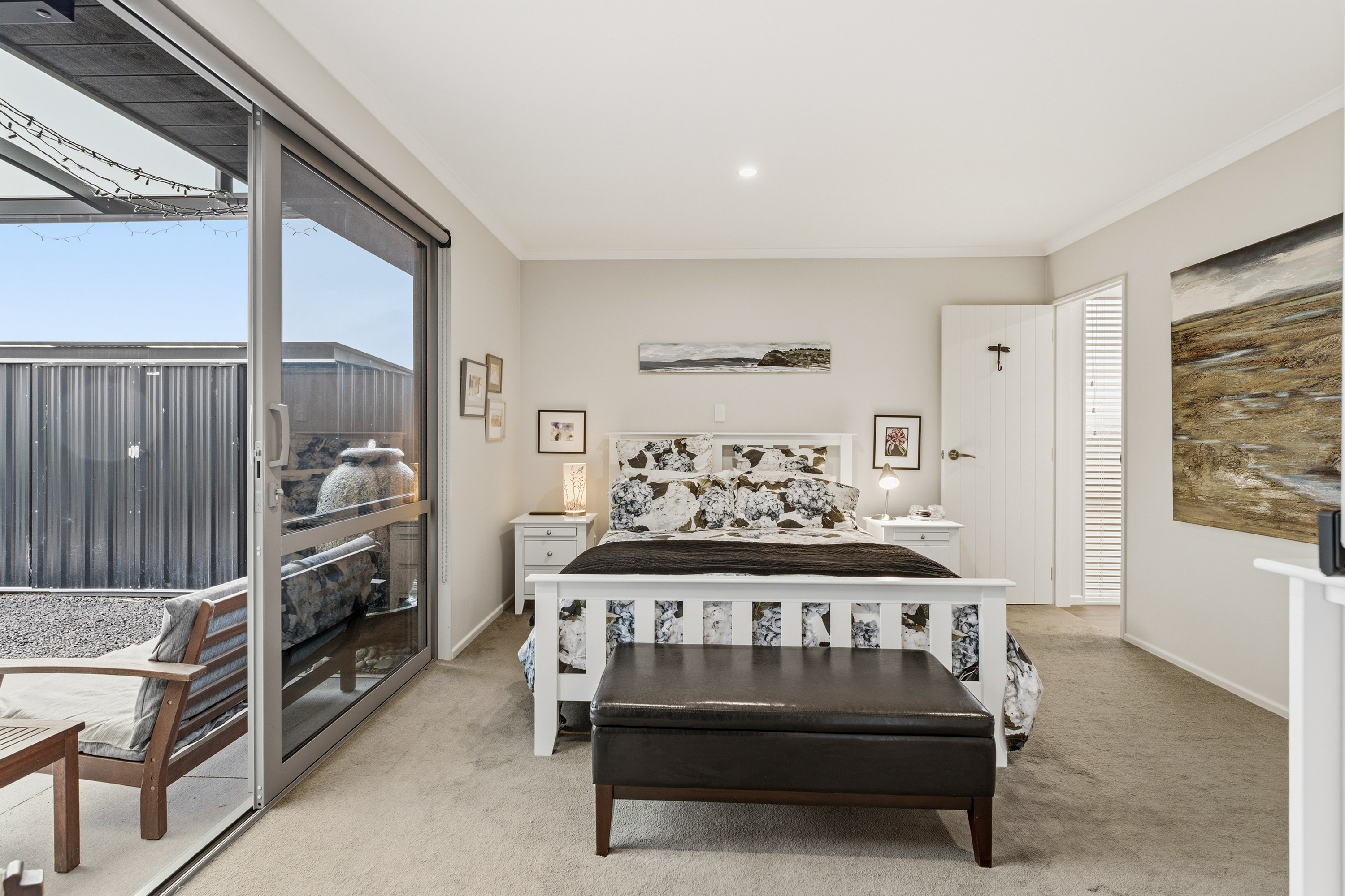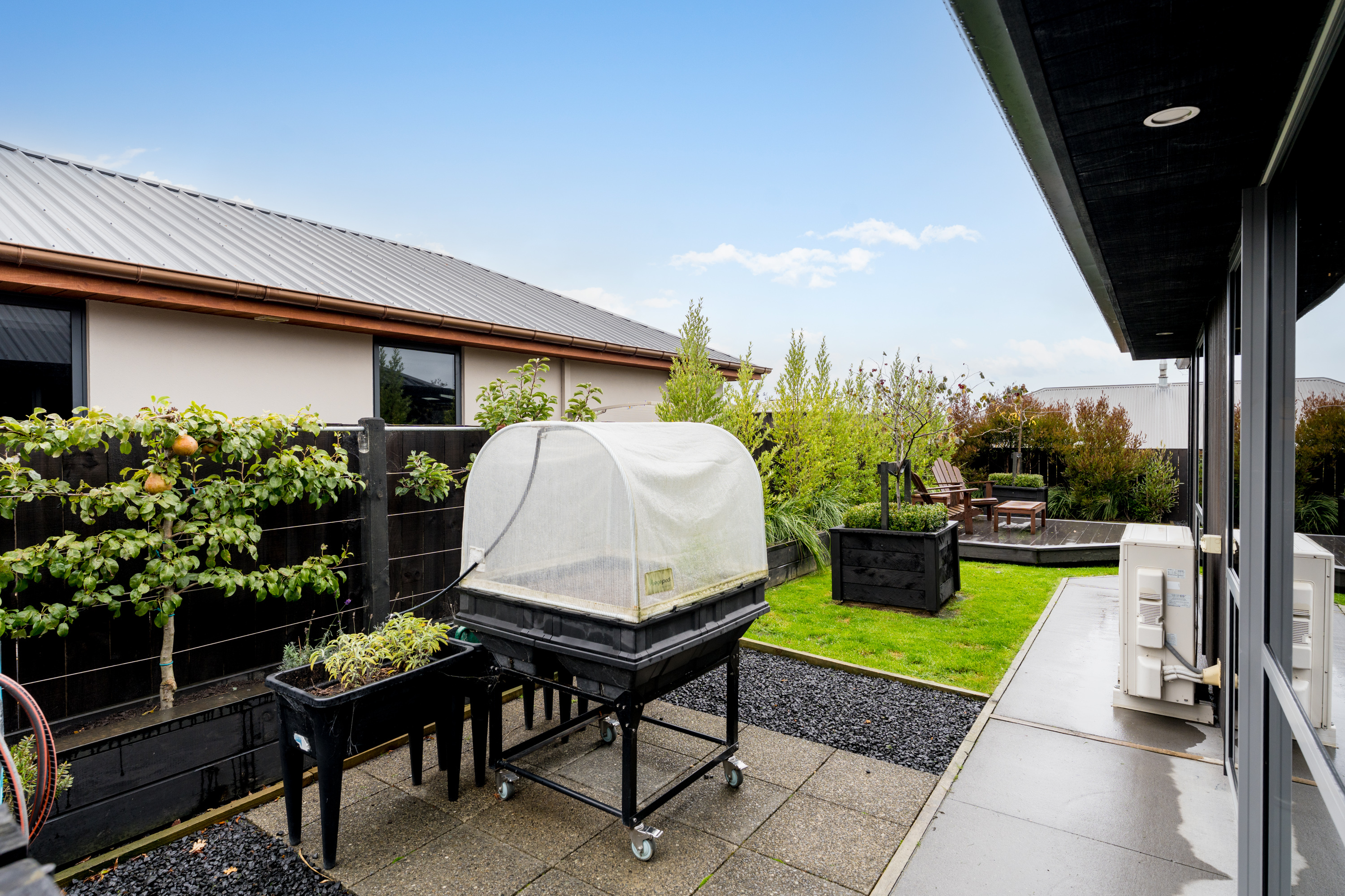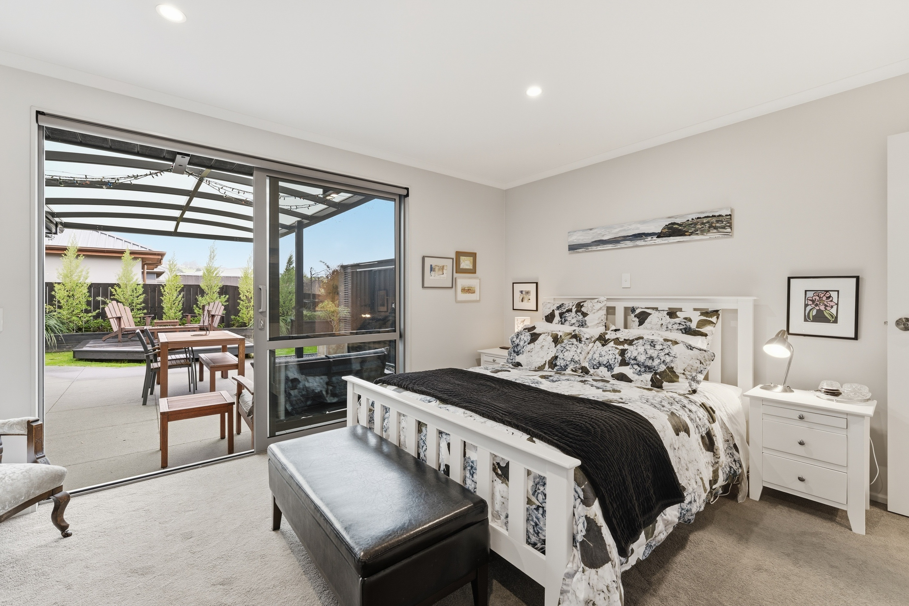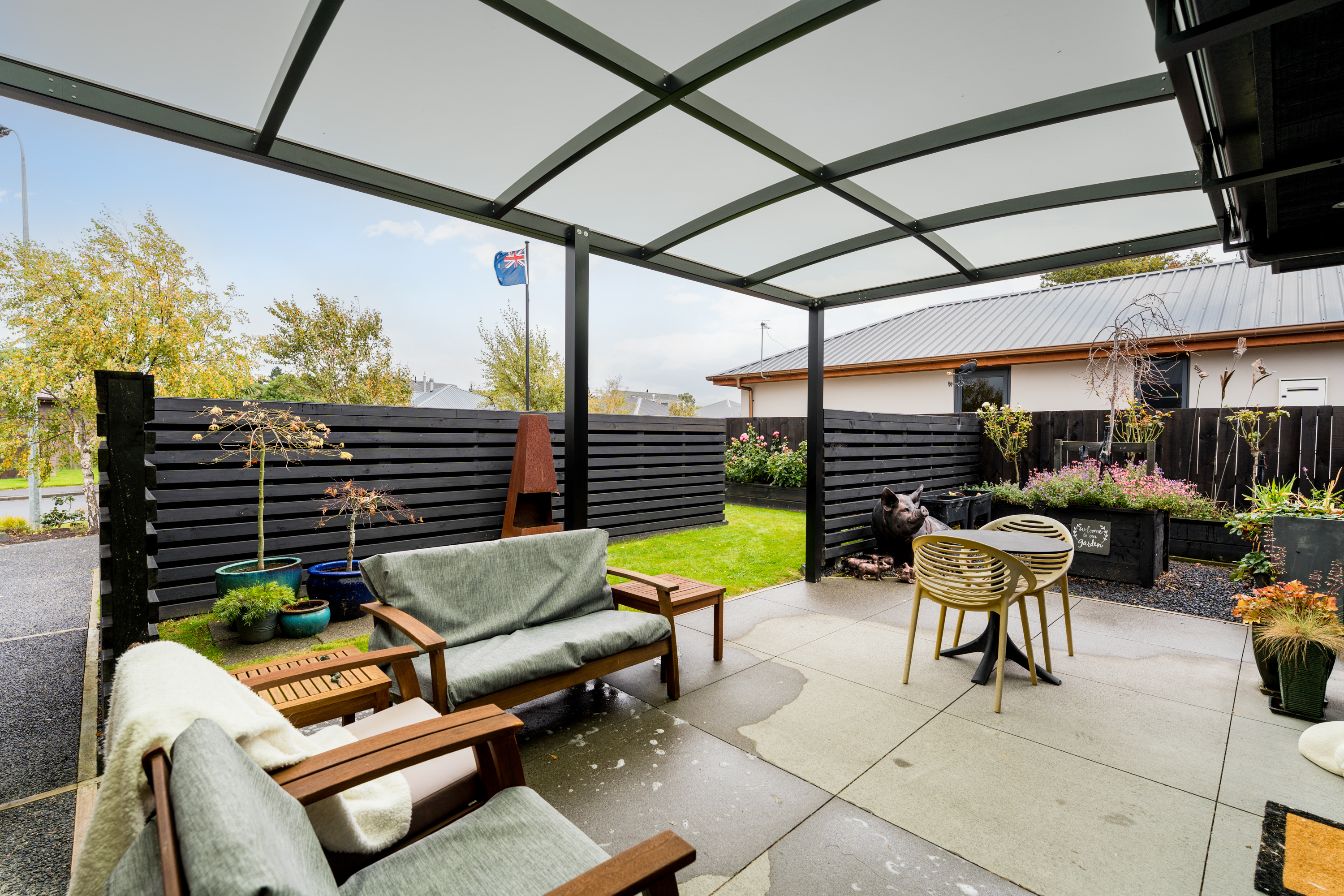 What a fabulous find in the wonderful community of Waldronville. Set in a quiet cul-de-sac of modern homes, you can immediately see the love and care that has been put into this beautifully presented property. The entrance with privacy screening flows into a spacious open plan living area that is light and bright. This room has been well considered to offer versatile indoor/outdoor living, from here you can access both a north facing covered patio and also a rear covered patio, perfect for entertainers and making the most of the warm months. The cooler times are also catered for with double glazing, a log burner plus heat pump. With flexibility of use for both lounging and dining this space also offers a generous kitchen with island bar and top-quality appliances. Off the hallway, you access three double bedrooms, the master suite with a door providing direct access to the patio, en-suite and walk in wardrobe complete with chandelier and a heater, a real treat for dressing in winter. The family bathroom has both bath and shower and the double garage is a cosy space for pets or tinkerers with a carpeted floor and heat pump! The 537m2 section has been thoughtfully landscaped to offer privacy, ease of care while being attractive and productive. Privacy screening is perfectly placed and along with the covered patios, there is a deck for the sun lovers. Lovely plantings surround you and the espaliered fruit trees are abundant with fruit while not taking up a lot of room. Two garden sheds add to the storage. The friendly community offers easy walks to the beach or the golf course. This home really does offer all the extras in a lovely location.