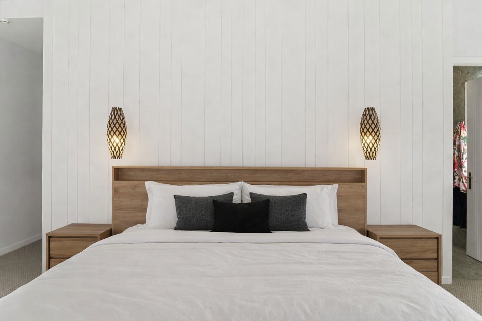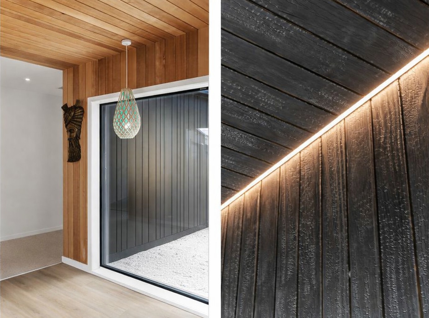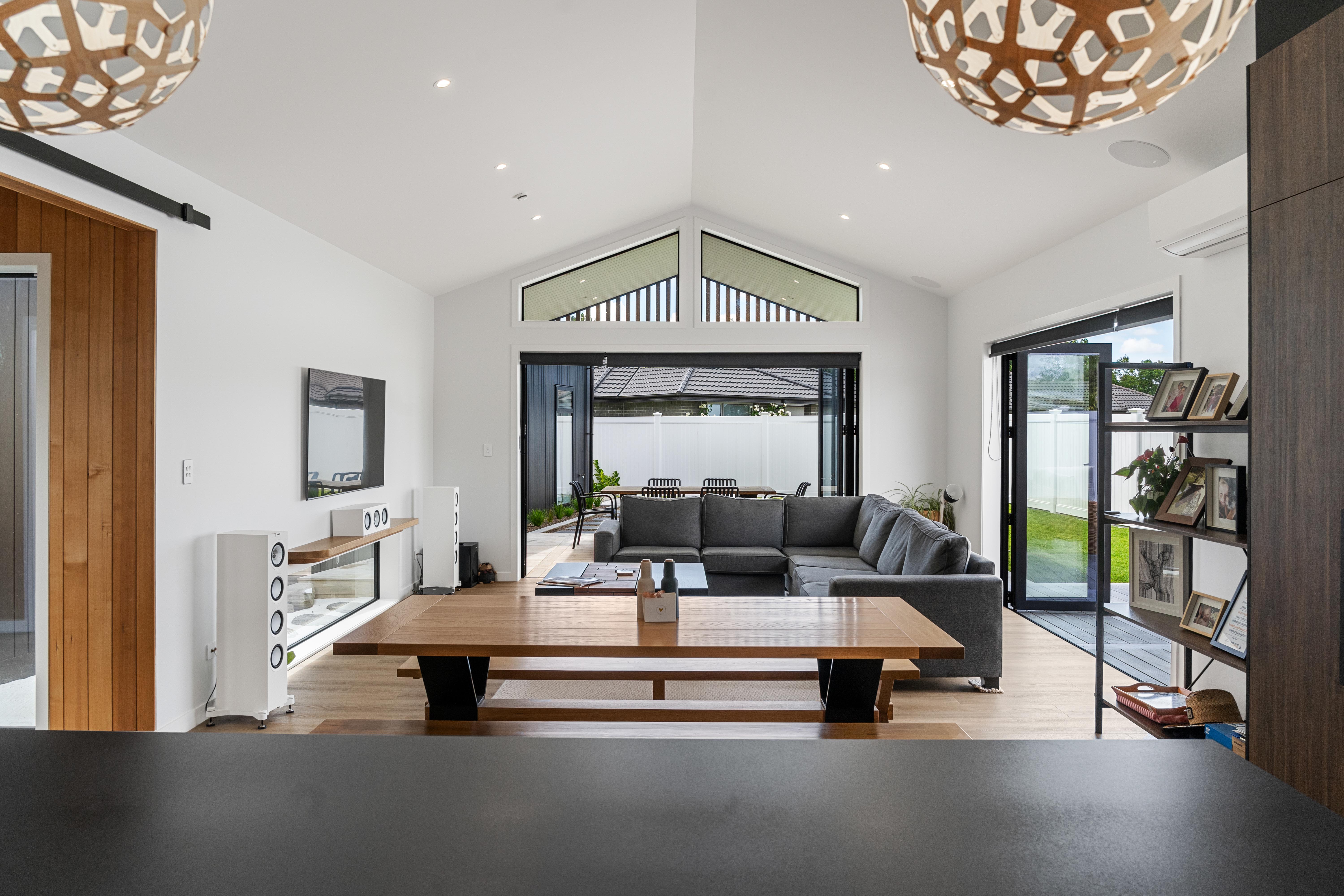 Step into this architecturally designed masterpiece, where bespoke craftsmanship and sophisticated finishes define every detail. The striking exterior combines Elda black brick, Weathertex Fusion vertical cladding, horizontal whitewashed Accoya, and cedar rain shades, creating a timeless yet contemporary façade. Inside, expansive living spaces are complemented by larger-than-average bedrooms, including a master suite measuring 4.45m x 5.95m with luxurious ensuite and walk-in robe. High-end finishes include Dekton porcelain and Prime Stone benchtops, 100% wool carpets, Shou Sugi Ban feature hallway wall with integrated LED lighting, and window seats with built-in storage. State-of-the-art conveniences include KEF built-in speakers, Schweigen silent bathroom fans, fully ducted hot-and-cold air conditioning, hard-wired smoke detectors, hallway sensor lights, and LED shower lighting. Architectural highlights extend to floor windows for natural light, a feature barn door, and David Trubridge lighting in key living areas. Outside, durable Accoya decking comes with a 50-year warranty, seamlessly connecting indoor and outdoor spaces. This home is a rare combination of luxury, thoughtful design, and technical excellence — perfect for those seeking comfort, style, and sophistication