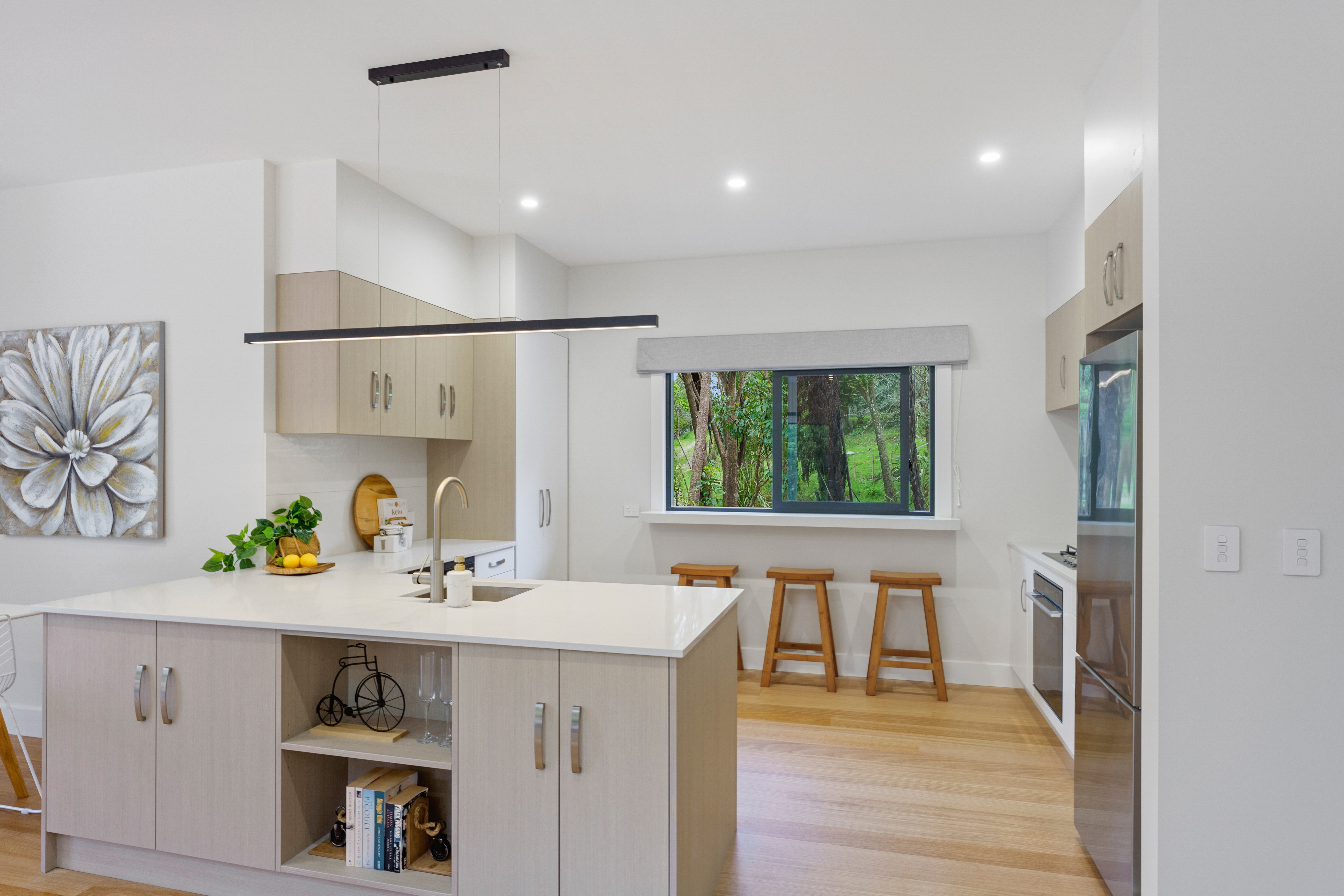 Set on approximately six acres of peaceful countryside, this delightful rural property offers privacy, beauty and a genuine sense of escape—without sacrificing convenience. Wind through the gorge, admire the beginnings of the Tararuas and arrive via a bush-lined driveway that signals what’s ahead: exclusivity, seclusion, calm and a true retreat from the everyday. Yet situated less than ten minutes drive from township amenities as well as the Expressway and a one hour connection to Wellington via Transmission Gully or Commuter train. This brand new dwelling has been designed to sit effortlessly within its natural surroundings and carefully crafted from the ground up to meet the exacting standards that JMC Builders are known for. A stunning, tiered 100m2 Vitex hardwood deck, creates a dramatic and welcoming arrival, with an array of native trees —including Totara, Rimu and Matai— enveloping the footprint neatly. Inside, multiple doors from the living spaces invites the outside in. High ceilings, Velux skylights and a custom, one-of-a-kind light feature flood the open-plan living space with light and add to the sense of space. The easy flow to the stylish kitchen is perfect for social occasions, entertaining or relaxed family living and features an engineered stone benchtop and never-been-used appliances Compact without compromise, this home showcases clever design features, good storage and high-quality fixtures and fittings throughout. Blackbutt timber flooring sweeps across the living areas, while every window frames a flourishing woodland outlook. A wood burner anchors the lounge, with a clever inset carpeted seating area making the fireplace the natural focal point. Underfloor heating in both bathrooms, alongside Mammoth insulation, thermally broken double glazed windows plus a heat pump and wood burner, ensures year-round warmth. A fully self-contained cottage provides excellent flexibility – ideal for guests, extended family, a work from home office or creative space. Built to code and lived in while the owners completed the main house, both are supported by a strong internet connection to the local network. Outdoors, the property continues to impress: three well-fenced paddocks (ideal for a handful of happy sheep), five rainwater tanks, two 15m2 sheds with a covered carport, additional storage, and ample firewood is stacked and ready. Plenty of parking space and a looped driveway completes the picture of functionality. This property must be viewed to appreciate all that’s on offer. To download the property files, please visit www.agentsend.com/76ParengaRoad For Sale – Asking Price $1,580,000 (RV $1.58M)