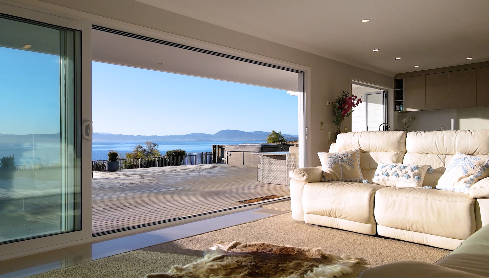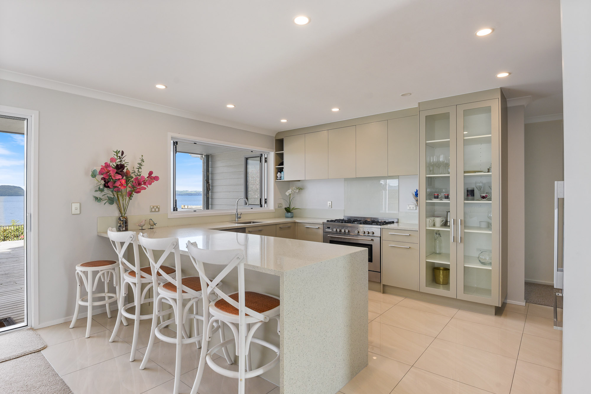 Welcome to a home where refined design meets nature’s quiet grandeur, a residence that does more than offer space; it offers a sense of place. Positioned above the shimmering lake edge, this exceptional property is a retreat in every sense. Set on 1,011sqm of beautifully landscaped and fully fenced grounds, it offers privacy, elevation, and unobstructed views across the lake, the kind that linger in memory long after the sun has set. Thoughtfully designed across two levels, this four-bedroom, three-bathroom home embraces open-plan living, generous proportions, and an effortless indoor-outdoor flow. At its heart is an entertainer’s dream, a large, open kitchen complete with a fully equipped butler’s kitchen, ideal for effortless hosting. This culinary space flows seamlessly onto the expansive entertainer’s deck, where the spa pool invites you, perfectly poised to take in sweeping lake vistas while steam curls into the sunset sky. Inside, warmth and character are woven through every detail. Bespoke timber features, from arched hallway accents to wood-accented ceilings, bring a lodge-like intimacy, while large windows and sliding doors ensure the home remains light-filled and connected to the landscape. Two expansive living areas offer flexibility for family life or entertaining, while a wood burner, double glazing, and ceiling insulation provides comfort through all seasons. The layout is functional yet refined, with each space designed to support both quiet moments and shared experiences. Upstairs, the primary bedrooms each open to private balconies, where misty mornings roll in over the water and stillness becomes a part of your daily rhythm. A dedicated study (or optional fifth bedroom) allows space to work, create, or simply retreat. Practicality is well considered too, with internal-access garaging, generous storage throughout, and modern comforts integrated seamlessly into the design. This is not just a property. It is more than a home. It’s a statement. A destination. A life reimagined, at the water’s edge.