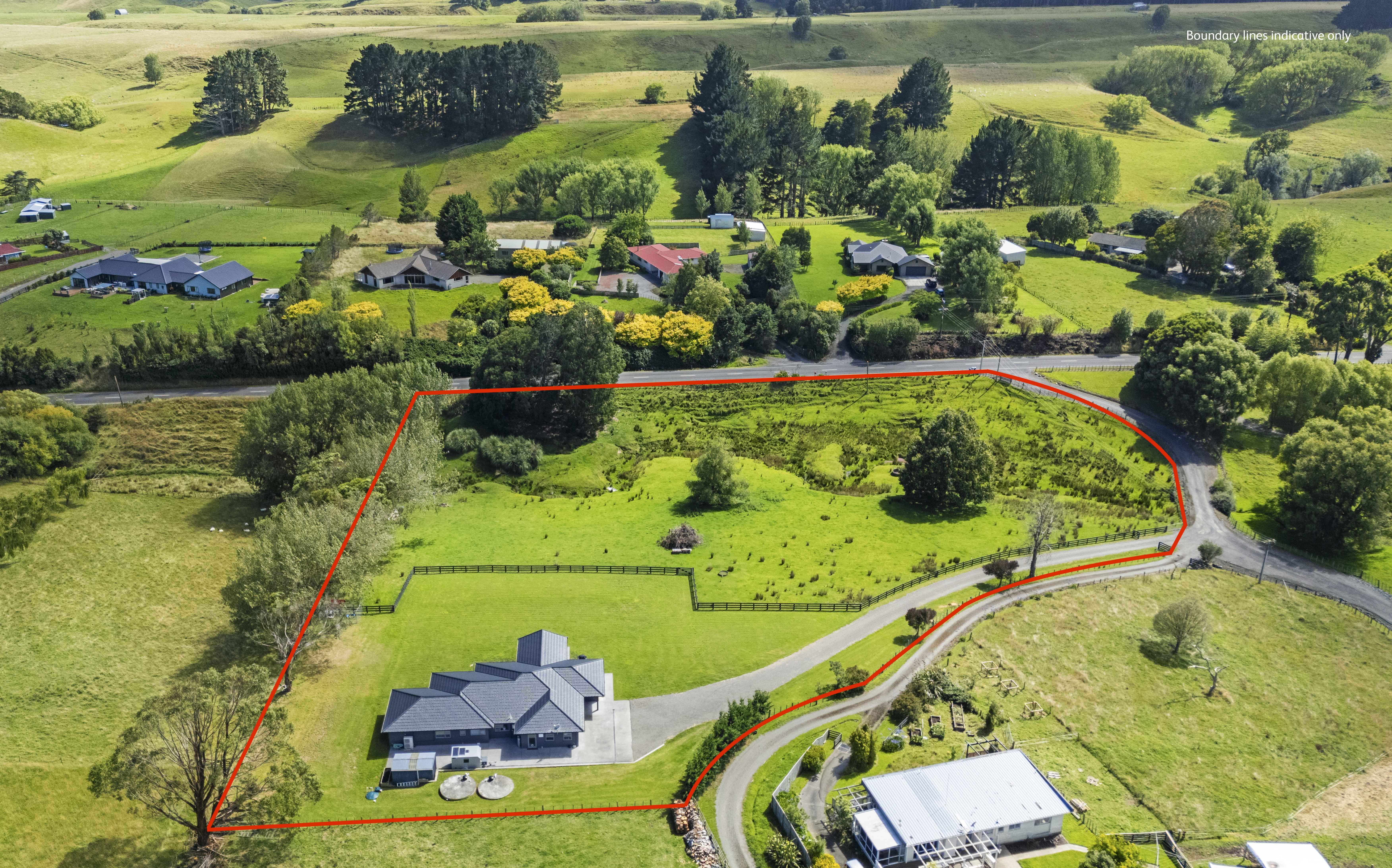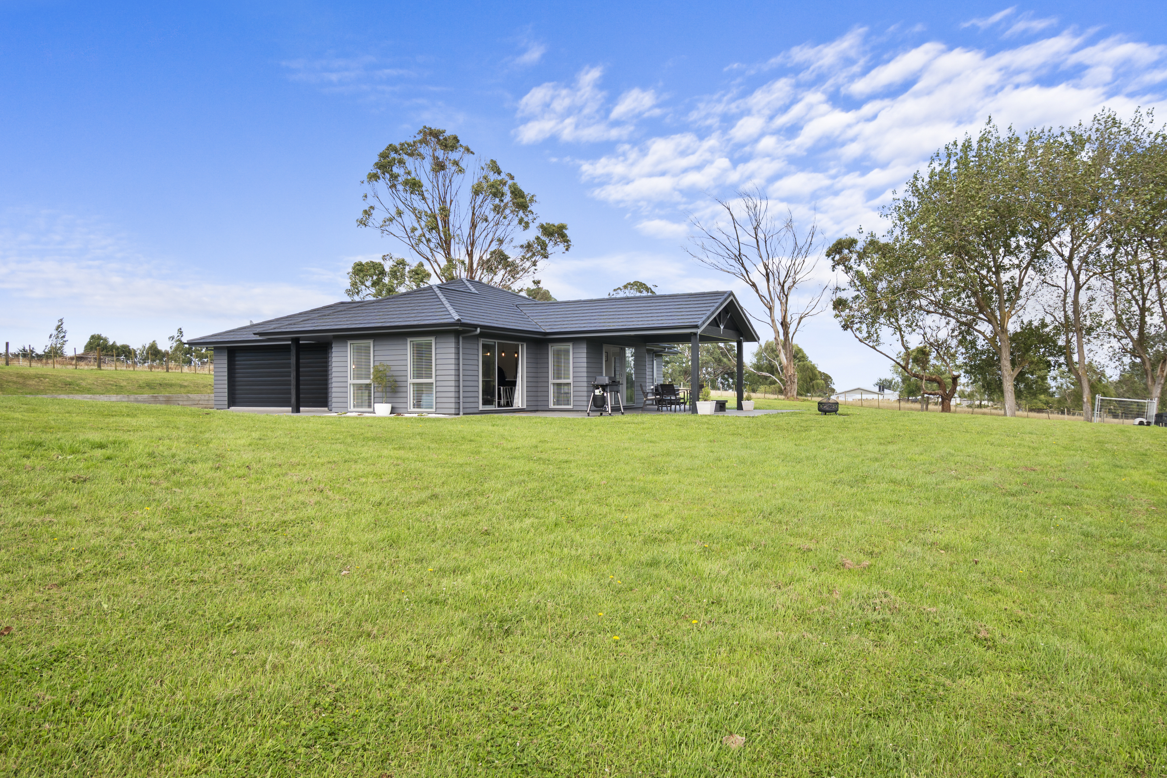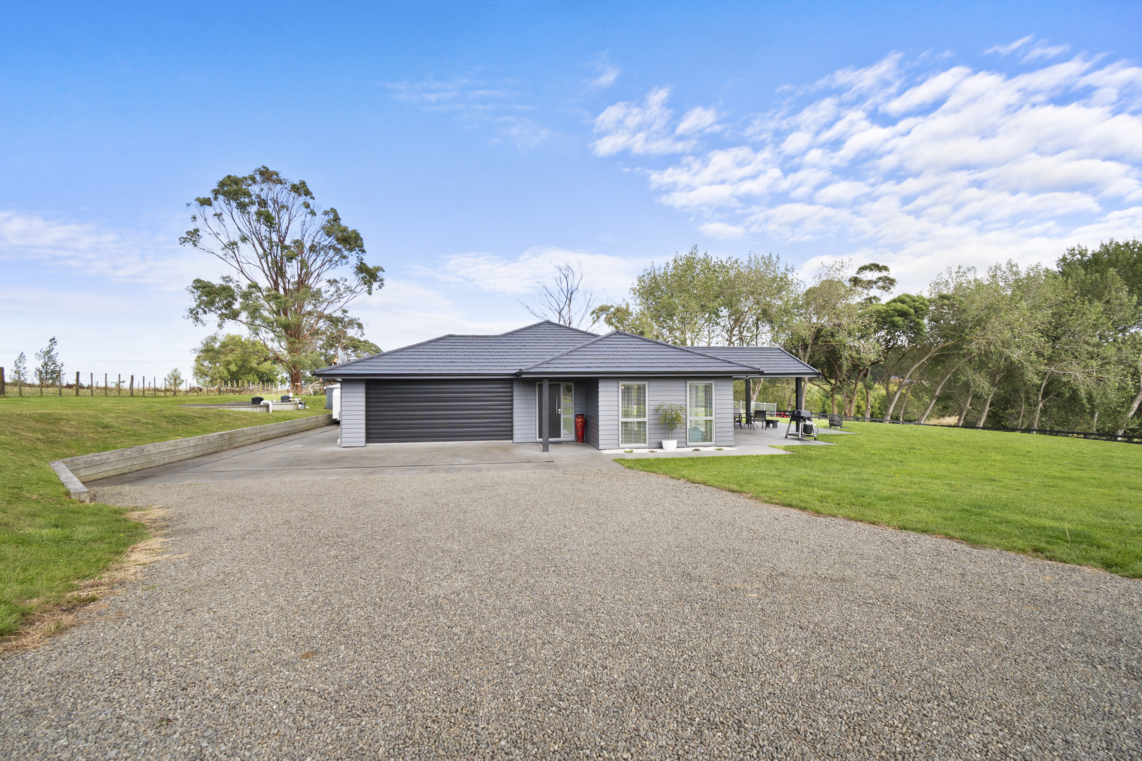 Built and presented to the highest show home quality, this home delivers the perfect blend of modern living and country tranquility and is sure to impress the most discerning of buyers. Set on 1.19 hectares, the 2021-built home features five bedrooms, including a master with a stylish ensuite and walk-in wardrobe. The remaining bedrooms are all generous in size and include built-in wardrobes. The kitchen is an entertainer’s delight, with a large scullery and easy flow to the family dining and living area, as well as a separate lounge. The living areas are designed for effortless living and entertaining, with a seamless flow to an expansive deck that is perfect for indoor-outdoor summer living. The large separate laundry, internal access garaging and a separate three-bay shed all provide as much storage or workspace as you could want. Secure electric gates open to the property, adding both privacy and convenience while enhancing the home’s sense of quality and arrival. Beautifully designed easy-care gardens, fully fenced grounds, a kerbed and sealed driveway, and a paddock completes the property that is both functional and flawless. Offering space, style, and comfort in equal measure, this is modern rural living at its best.