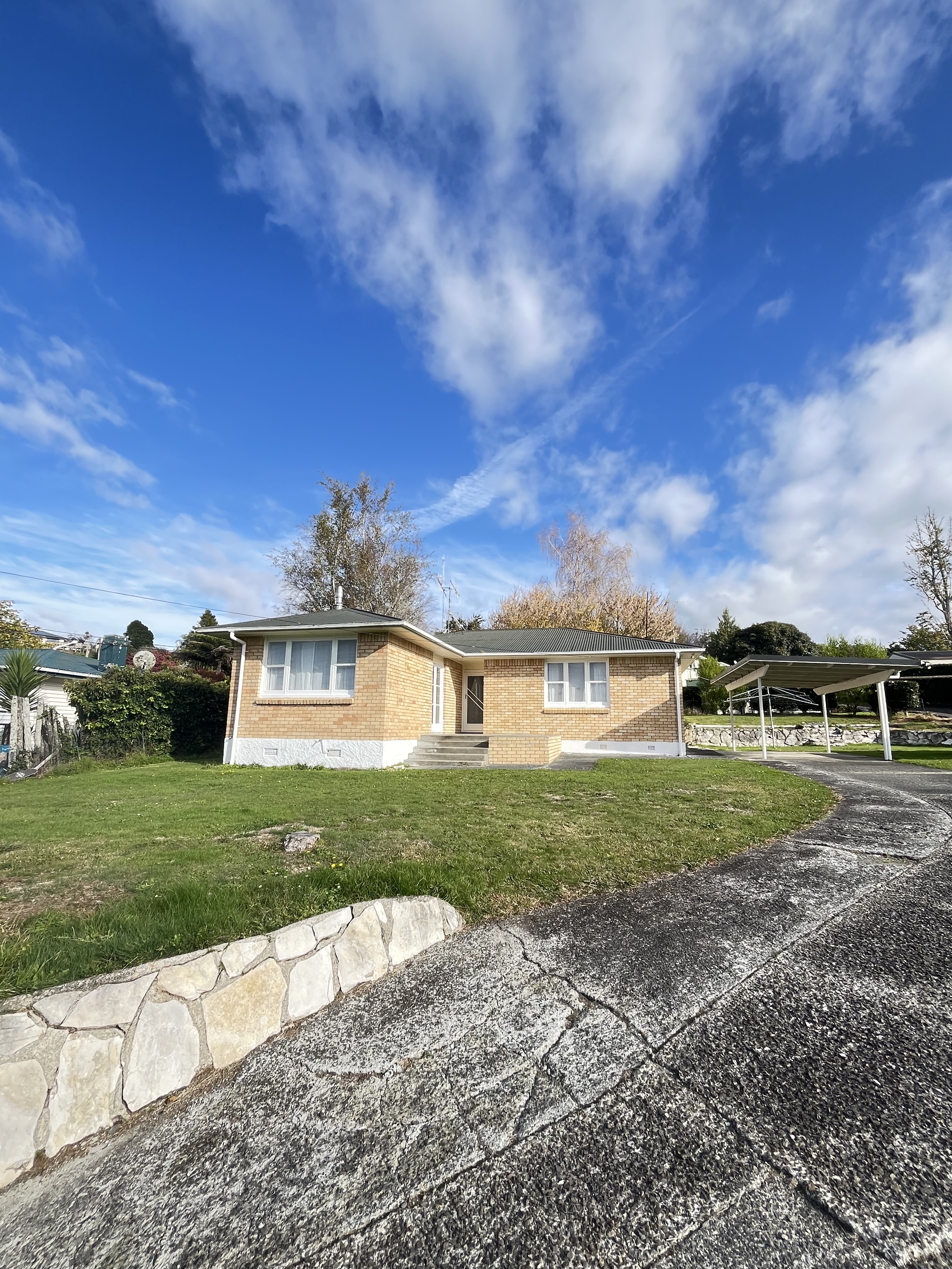 Welcome to 9 Kuku Street - a solid 120 m2, three-bedroom brick home built in 1963, offering timeless appeal and a tranquil setting. Set on an expansive 820 m2 flat section, this well-maintained property combines classic features with practical living in a quiet cul-de-sac. Elevated and north-facing, the home enjoys an abundance of natural light and sunshine throughout the day. Step into the spacious living area with exposed timber ceiling beams and a cosy log fire - creating a warm and inviting atmosphere year-round. French doors lead out to a sunny patio, where you can relax and take in the peaceful rural outlook. The kitchen is generously sized with its original cabinetry and space for a family dining table, offering a functional and welcoming hub. One of the bedrooms has been opened to the dining area, enhancing the sense of space and versatility - though it can easily be converted back into a private room. This space also features French doors for added charm and indoor-outdoor flow. The exterior timber joinery has been freshly painted, and the interior has had a recent refresh, giving the home a crisp, tidy finish. A covered carport provides easy access to the house, and a garden shed offers storage for tools and outdoor equipment. With its spacious section, solid 1960s construction, and sunny rural outlook, this property is a fantastic opportunity to secure a well-presented home with room to grow in a sought-after, quiet location.