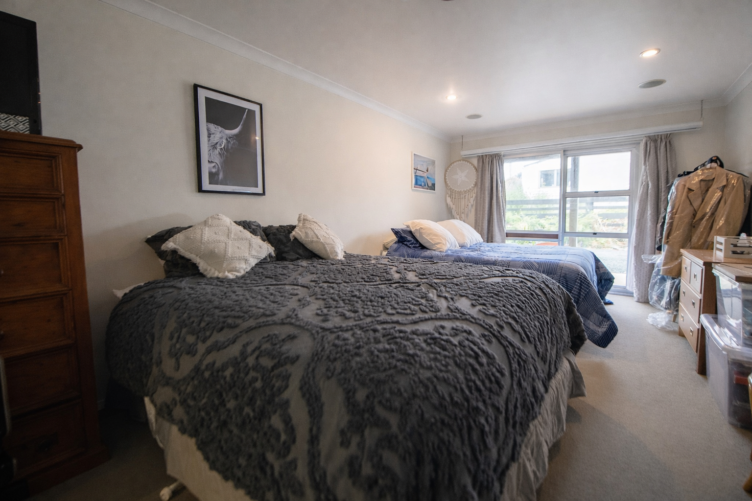 Enjoy sea views and the relaxed coastal lifestyle in this versatile two-level Kaka Point home on a 764m2 section - perfect as a holiday escape, guest retreat, or permanent residence. Upstairs, open-plan kitchen, dining, and lounge flow through ranchsliders to the front deck, with wrap-around decking extending to a rear deck and stairs down to a private backyard. The main bedroom opens to the deck, with a second bedroom nearby. The fully tiled bathroom features a wet-floor shower, bath, and underfloor heating, with the hot water cylinder and storage integrated in the hallway. A separate toilet is conveniently adjacent. Downstairs, accessed externally, offers a rumpus or man-cave, extra bedrooms, kitchenette, smaller living area, shower, vanity and toilet, plus laundry facilities - ideal for guests or extended family. Double glazing upstairs, aluminium joinery, Coloursteel roof, separate double garage, and carport underneath complete the home. Tucked in a secluded cul-de-sac, you're moments from the beach, surf club, Sandy's Restaurant & Bar, and the Catlins Scenic Route. Priced to sell - secure your coastal escape today!