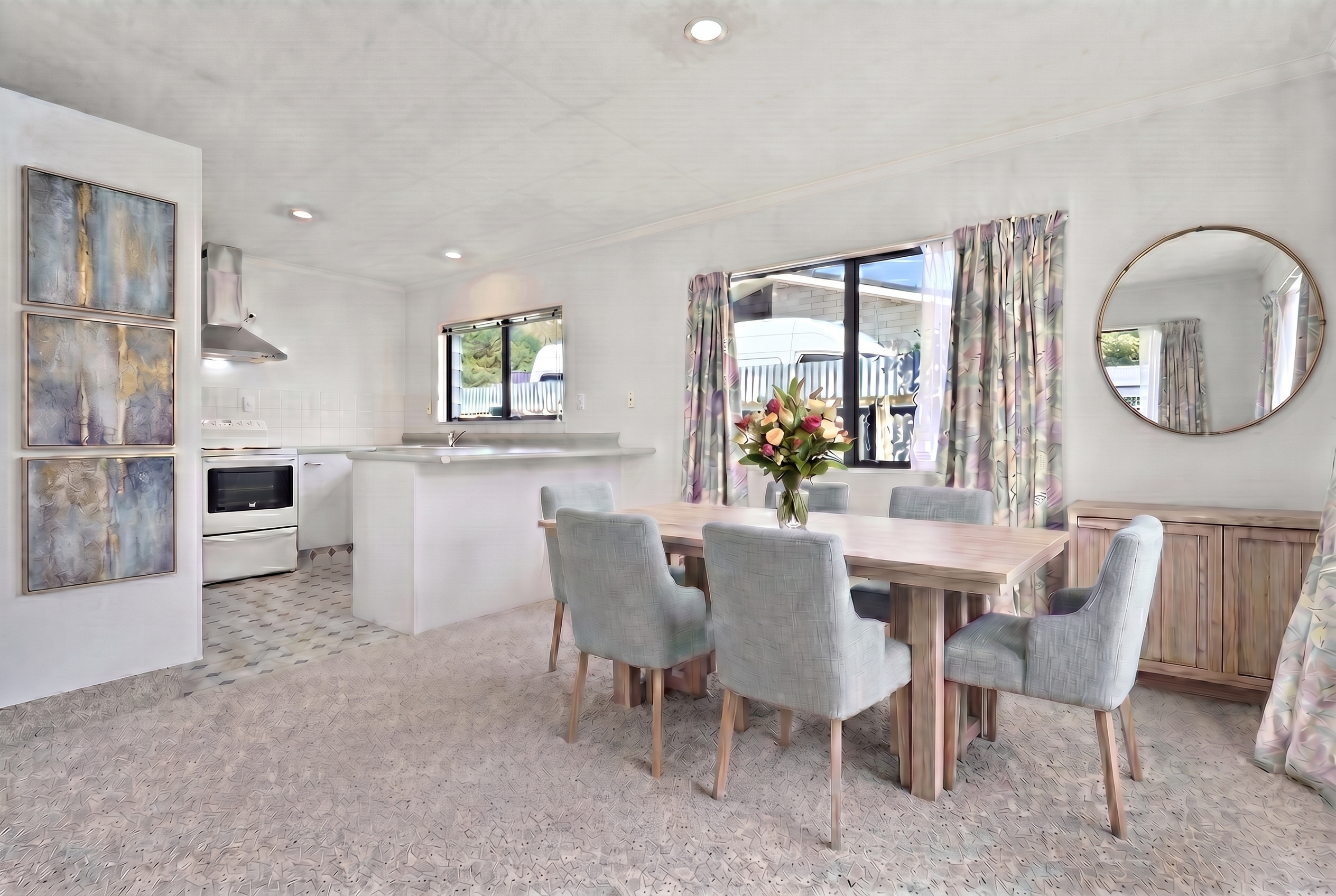Well presented and easy care, this home will appeal to first home buyers, downsizers, investors, and anyone seeking a low maintenance lifestyle in a handy location. Offering three generous double bedrooms, all with large wardrobes, including a master with direct bathroom access for added convenience. Functional kitchen and dining flow through to a spacious open plan living area, kept comfortable year round with a heat pump. Light-filled and welcoming, living opens to a covered patio and private lawn, ideal for relaxing or entertaining. Bathroom includes shower, bath, and vanity, with a separate toilet for everyday practicality. A DVS system and good insulation ensure Healthy Homes compliance. Outside, the property is secure and fully fenced, with ample off street parking and an integral garage with automatic door and laundry. Positioned well back from the road for added privacy, this home delivers comfort, space, and low maintenance living close to local amenities. Call now to arrange a private viewing or visit an open home. Disclaimer: This property has been digitally staged