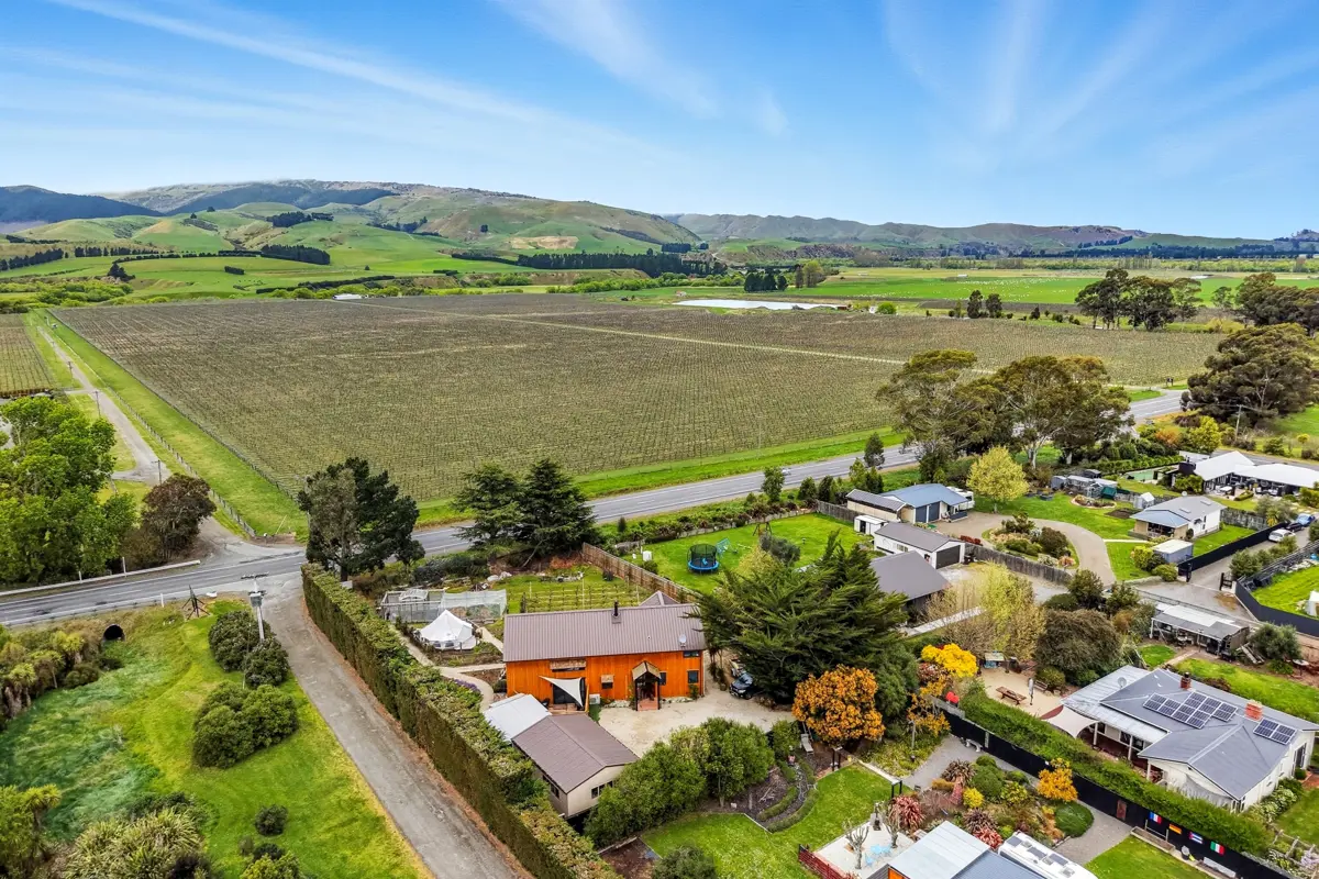 You’ll fall in love the moment you step inside this truly unique 214m² home! Bursting with personality and clever design, every detail has been crafted with care and creativity. The striking Lawson Cypress exterior, contrasting joinery, and stunning leadlight windows make a lasting first impression. Inside, the well-designed kitchen flows into the open-plan dining and living area, where the impressive ceiling height floods the space with light and creates an incredible sense of scale. The beautifully tiled main bathroom offers a touch of luxury, while the ensuite has been designed as a serene space to relax and unwind – complemented by a generous walk-in robe and dressing room. Warmth and comfort are assured with both a wood burner and heat pump. Set on a generous 1,694m² section, the property features flourishing gardens, a large sun-soaked deck, and even a petite vineyard of Pinot Noir vines! There’s also a stylish bell tent for guests, hobbies, or a creative space, along with plenty of garaging for vehicles and storage. Perfectly positioned in the heart of Waipara’s wine country, this home is as special as the location itself – a true one-off that has to be seen to be believed.
