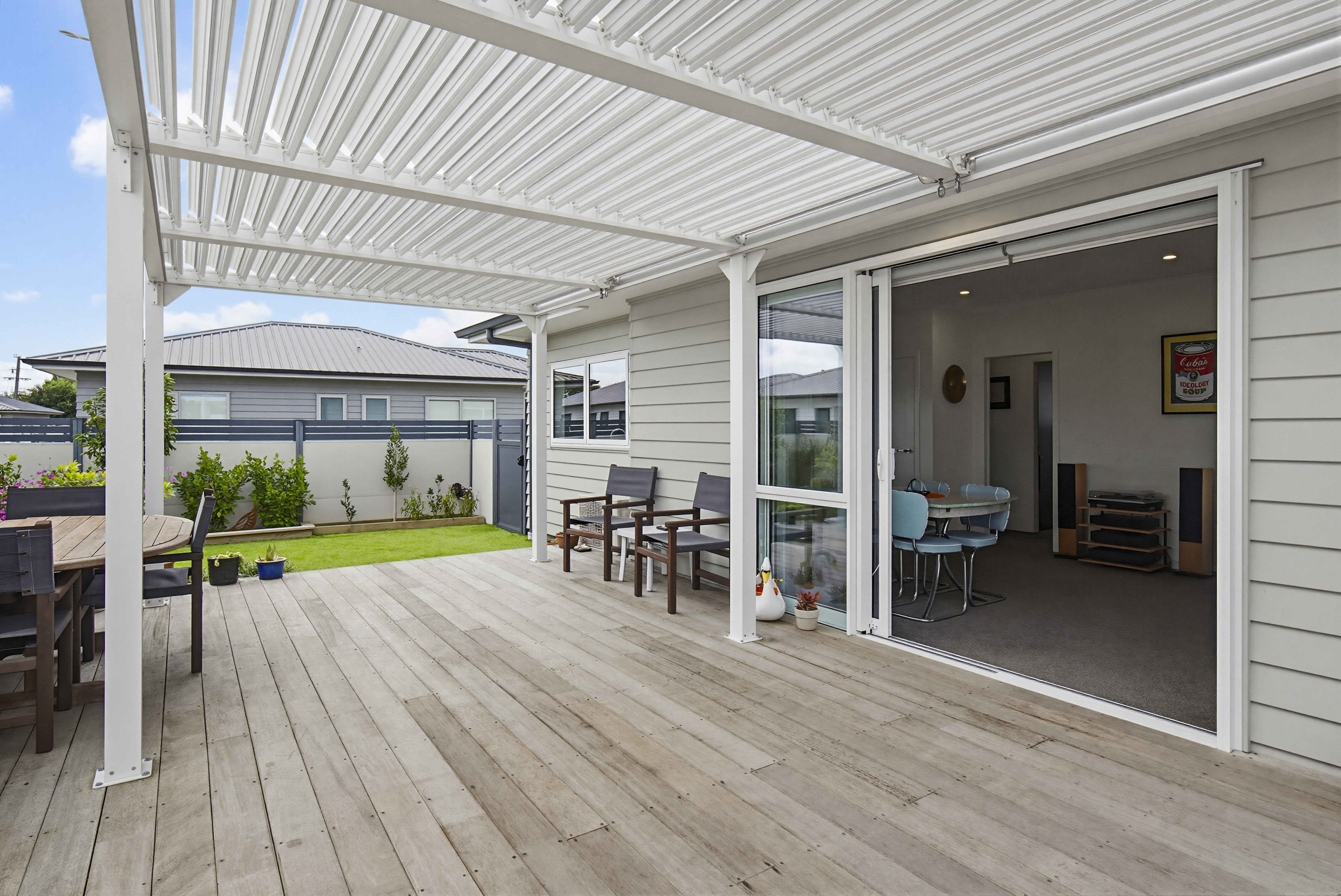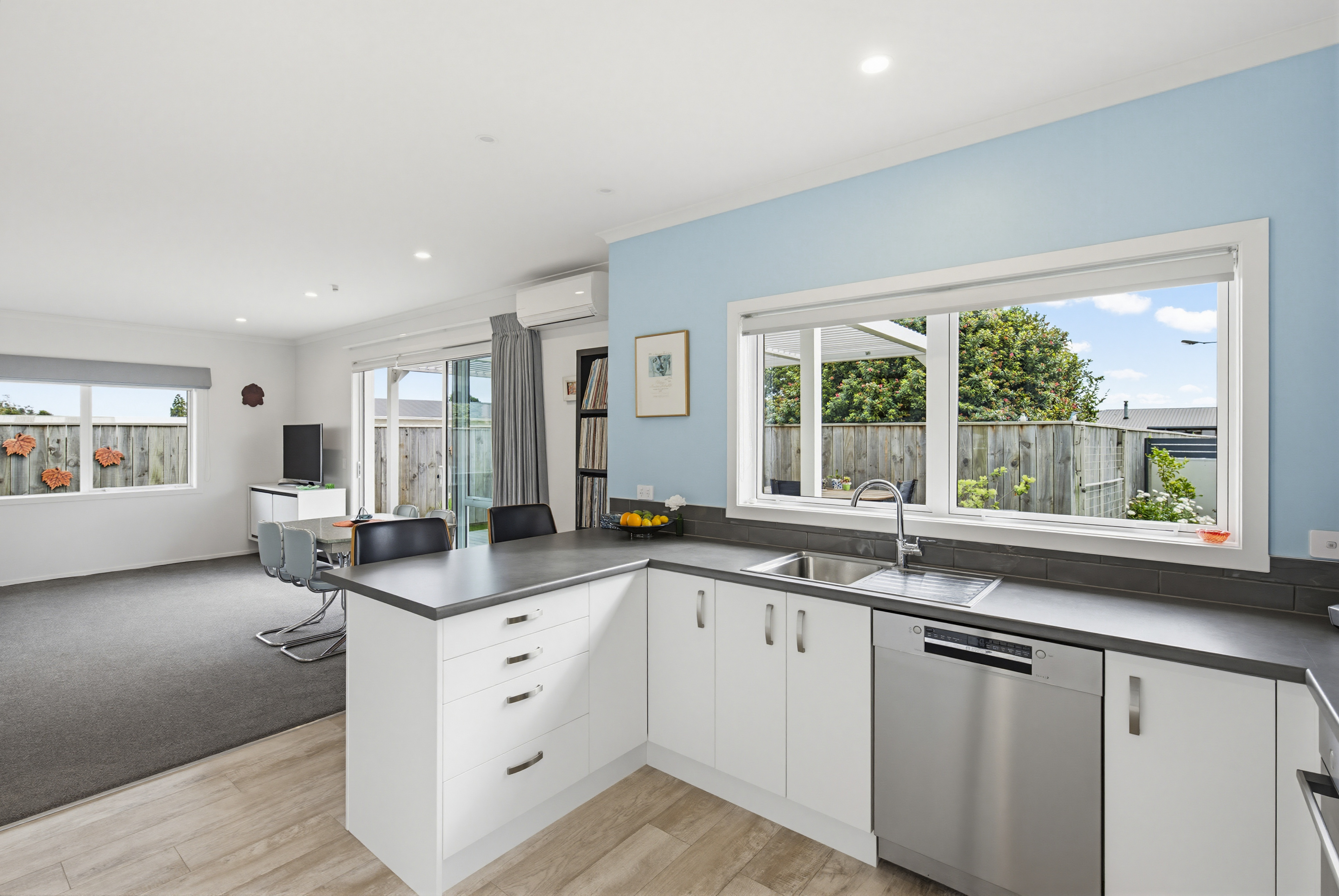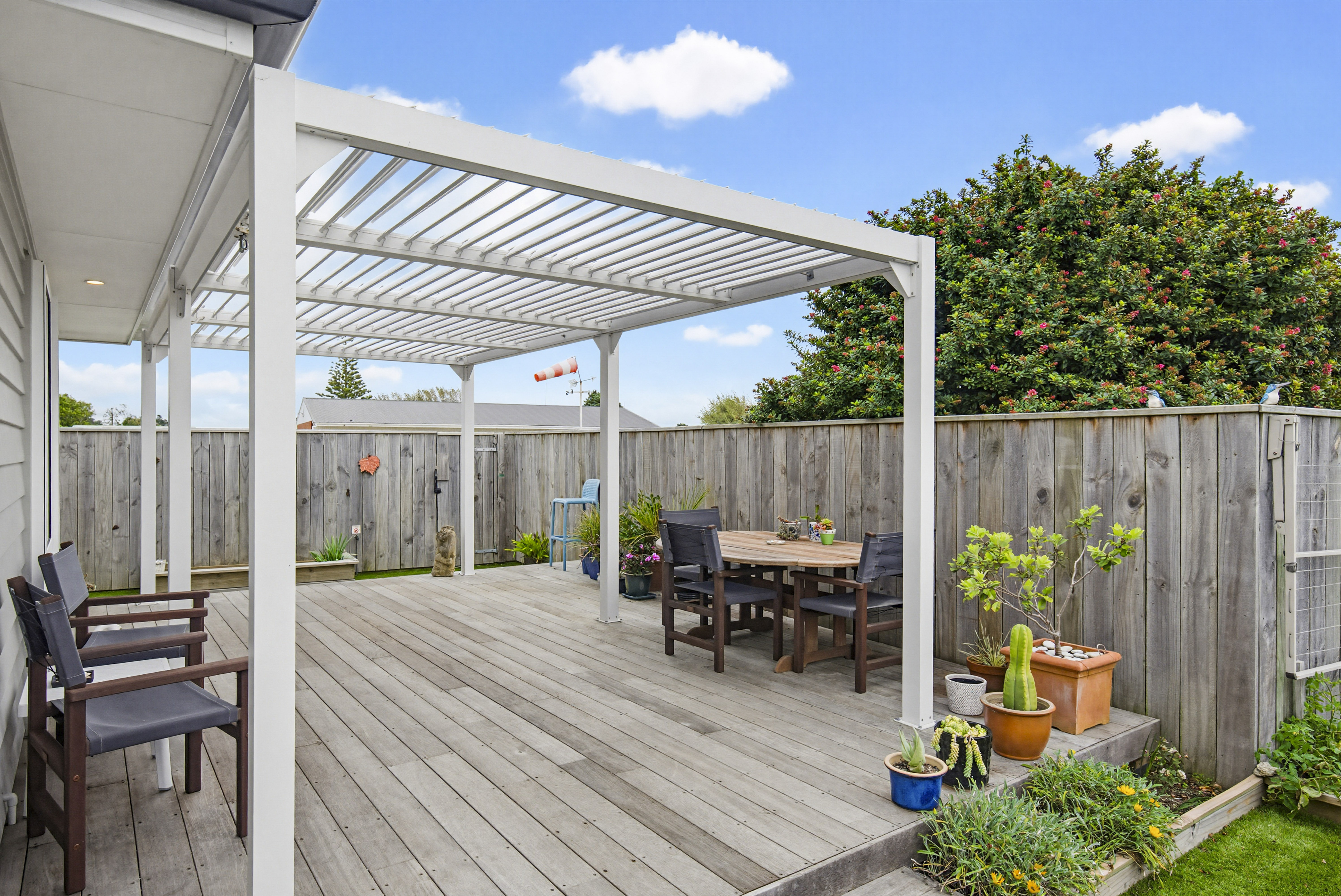 Tucked privately away off the road frontage in the ever popular Jubilee Gardens, this near-new, two-bedroom fee simple home, creates the perfect blend of comfort, simplicity, and effortless living from the moment you arrive. Positioned for all day sun, this thoughtfully designed home encourages you to slow down and simply enjoy from the moment you arrive. Built in 2022 by A1 Homes, complemented by full double glazing and a heat pump for year-round providing warmth, comfort, and easy living throughout every season. At the heart of the home, the open plan layout flows effortlessly, with a spacious kitchen and living space that connects beautifully to the outdoors, creating a great indoor-outdoor flow. Stack the doors back and step onto the stunning Kwila deck, the perfect place to unwind and enjoy a quiet morning coffee or soaking in those beautiful afternoon and evening sunsets under the pergola, as the day winds down. Life outdoors is beautifully simple, with easy-care grounds that free up your time to truly enjoy home and life. There is a quiet sense of privacy here, like your own tucked-away haven. The addition of fruit trees bring a lovely connection to nature, offering something special to enjoy as the seasons change. Additional features include internal access garaging with carpet and an automatic door, along with a large driveway and off-street parking for added convenience. Whether you are downsizing, investing, or looking for a peaceful place to call home, this is a property that offers comfort, convenience, and a relaxed lifestyle within a well-connected Ōtaki town location with the convivence of the Ōtaki Bowling Club just a short stroll away and the township within easy reach for shops, cafes, and everyday amenities. Get in touch today to arrange your viewing, this is more than a home, it’s a lifestyle of ease, warmth, and simplicity.