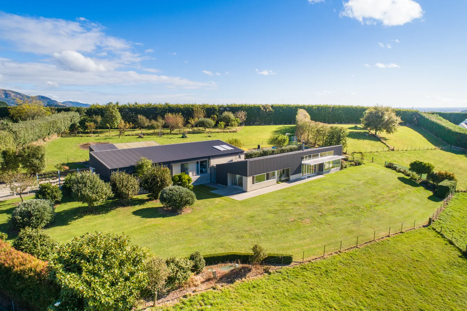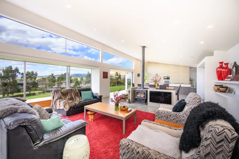 Welcome to a property where architectural integrity meets natural beauty - an expansive 1.25-hectare site thoughtfully developed to embrace space, light, and landscape. This 296m2 contemporary residence has been meticulously designed to balance luxurious living with practical functionality, all while responding to its unique environment. Anchored by a strong linear form, the home is oriented to maximize northern sun exposure, with floor-to-ceiling glazing along the main facade inviting natural light deep into the interior spaces. The central volume is defined by a dramatic vaulted ceiling, establishing a sense of openness and vertical grandeur within the open-plan kitchen, dining, and living zones - ideal for both everyday living and entertaining on a larger scale. The kitchen acts as a social and functional heart, equipped with a walk-in pantry and extensive preparation space, allowing for seamless hosting and interaction. Material selections and spatial proportions reflect a refined yet welcoming atmosphere throughout. The floor plan is divided across two levels to optimize site contour and provide separation of private and communal areas. The upper-level houses four generously proportioned bedrooms, including a master suite complete with a custom-designed walk-in wardrobe and a spacious ensuite. Both bathrooms are enhanced with underfloor heating, while a separate WC adds practicality for family life. Architectural detailing includes double glazing throughout, passive solar design strategies, and a centrally located wood burner to ensure year-round comfort. The separate laundry and double internal access garage further contribute to the home's functional sophistication. Externally, the residence is framed by mature fruit trees and flourishing vegetable gardens - elements that not only enhance privacy but also contribute to the self-sustaining ethos of the site. The home's strong connection to the outdoors is reinforced through multiple access points and carefully designed flow between interior and exterior spaces, enabling effortless enjoyment of the panoramic rural vistas. This property represents more than a home - it's an architecturally considered lifestyle retreat where structure and setting exist in perfect harmony. Arrange a private viewing today and experience the space, light, and architectural quality for yourself.