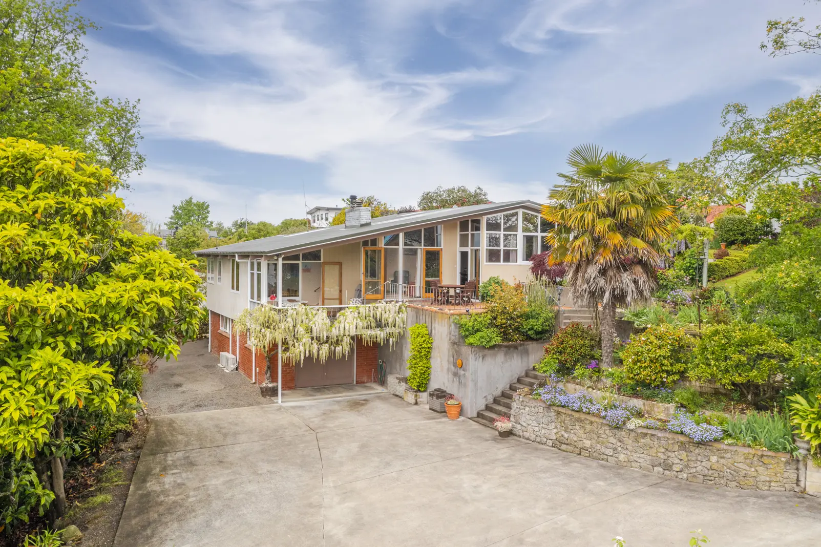 Designed by the renowned architect Barry Sweet, this inspired family oasis offers a truly exceptional living experience right in the heart of Waipukurau township. The elevated positioning offers captivating views across town as far as Te Mata Peak in distance while the beautiful garden setting, home to numerous tui, envelopes the property in a sense of tranquillity. At its heart are the light filled living spaces including formal lounge, dining, well-appointed kitchen and study. The split level living has stunning native timber detailing including a unique sliding wall that creates either cohesion or separation between the areas depending on the occasion. Both spaces flow through large glass paned timber doors to the north facing patios framed by the sweet fragrance of the white wisteria while showcasing the breathtaking views. There are three double bedrooms to the upper level, including a spacious master that also opens to the terrace, complemented by a nicely appointed family bathroom. In addition is a fourth double bedroom with own ensuite bathroom and private external access that creates a versatile separate accommodation space ideal for visiting guests or perhaps B&B options. Outside, the exquisite gardens are a testament to the care and attention given by the owners over the past 16 years complete with prolific vegetable gardens, numerous fruit trees including a fruiting avocado, and stunning flower beds. There are two separate single garages, along with generous off-street parking allowing ample room for vehicles. The highly desirable location offers convenience to town, kindy, school and park making it a perfect family home across the ages.