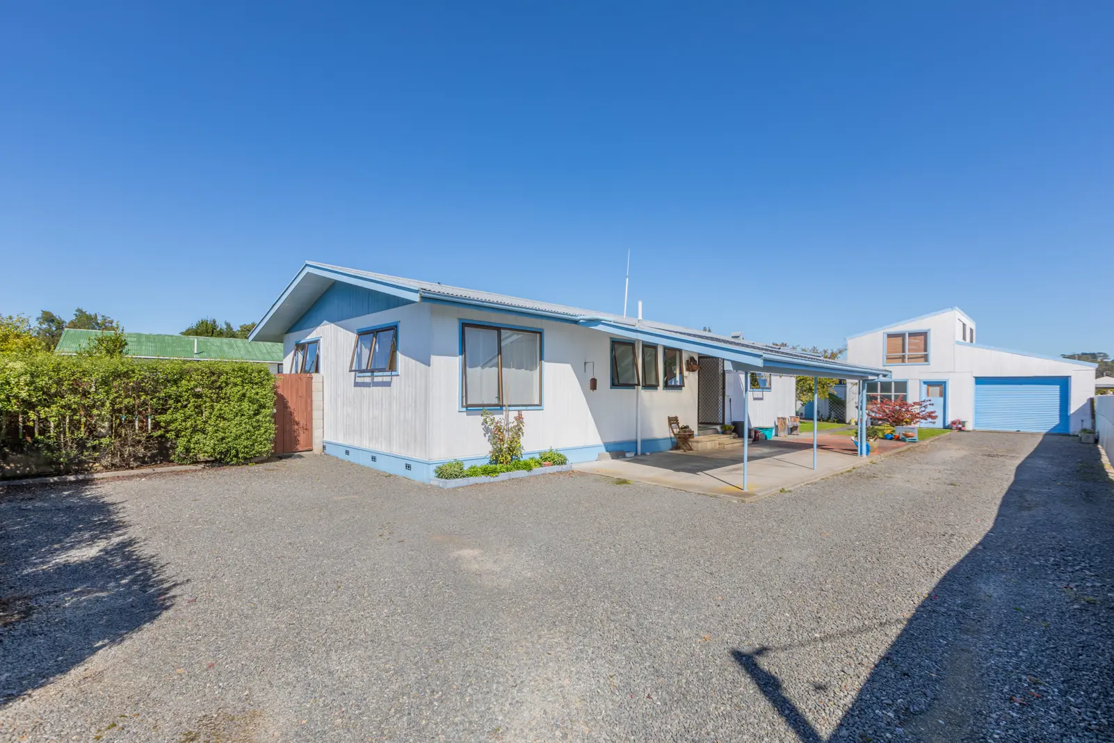 If you like tinkering in the shed, need a space for a workshop or to work from home, this tidy three bedroom home has a brilliant single garage with a workshop, storage and an upstairs area with two rooms which would be a fantastic work from home space or even has potential to be renovated in to a self contained studio. Let your imagination run. Located on a back section, the home itself has great spaces and a lot of potential as a retirement, family or first home. The kitchen layout is very functional and spacious and links through to the dining area, an inbuilt office space and large living room. There is a gas fire and a heat pump in the main living area and opens to a second living space with doors to the garden. There are three double bedrooms, the bathroom has a shower and vanity with the separate toilet alongside. The home is privately positioned and has a great amount of garden and lawn - enough but not too much, and there is also plenty of off street parking and a large carport at the front. I could keep going but I will stop there and suggest you come and see this property for yourself!