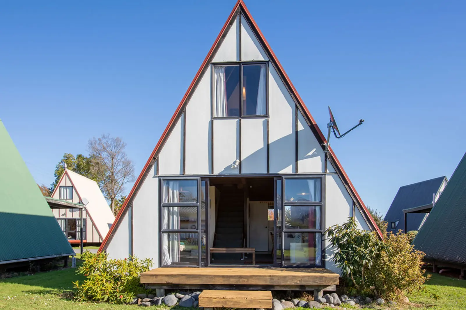 A fabulous street facing A-Frame with front row seats capturing a spectacular view of Mt Ruapehu on both levels of this chalet. As you step into this chalet, you're greeted by an inviting open-plan living space. The living area, bathed in natural light, is perfect for leisurely days, while the kitchen stands nearby with lots of cupboard and bench space making it easy to create something delicious to share. Enjoy a good read, a classic film, or simply the pleasure of each other's company in this cosy retreat. There is a separate laundry as well as bathroom complete with shower & toilet as well as a drying cupboard downstairs plus plenty of under stair storage. Upstairs you’ll find the mezzanine area and the main bedroom with a comfy queen bed. One quick look through the bedroom window in the morning will set the mood for the day, whether it’s a day for skiing, a bike ride, or perhaps some frisbee golf – the choice is yours. Outside, the property is a low-maintenance design, featuring aluminium windows and a sturdy sloping roof. With minimal exterior upkeep, you're free to spend your time enjoying the activities you like to do best. Having good off-street parking, this A-frame is an exceptional find, ready for someone to call it their own.