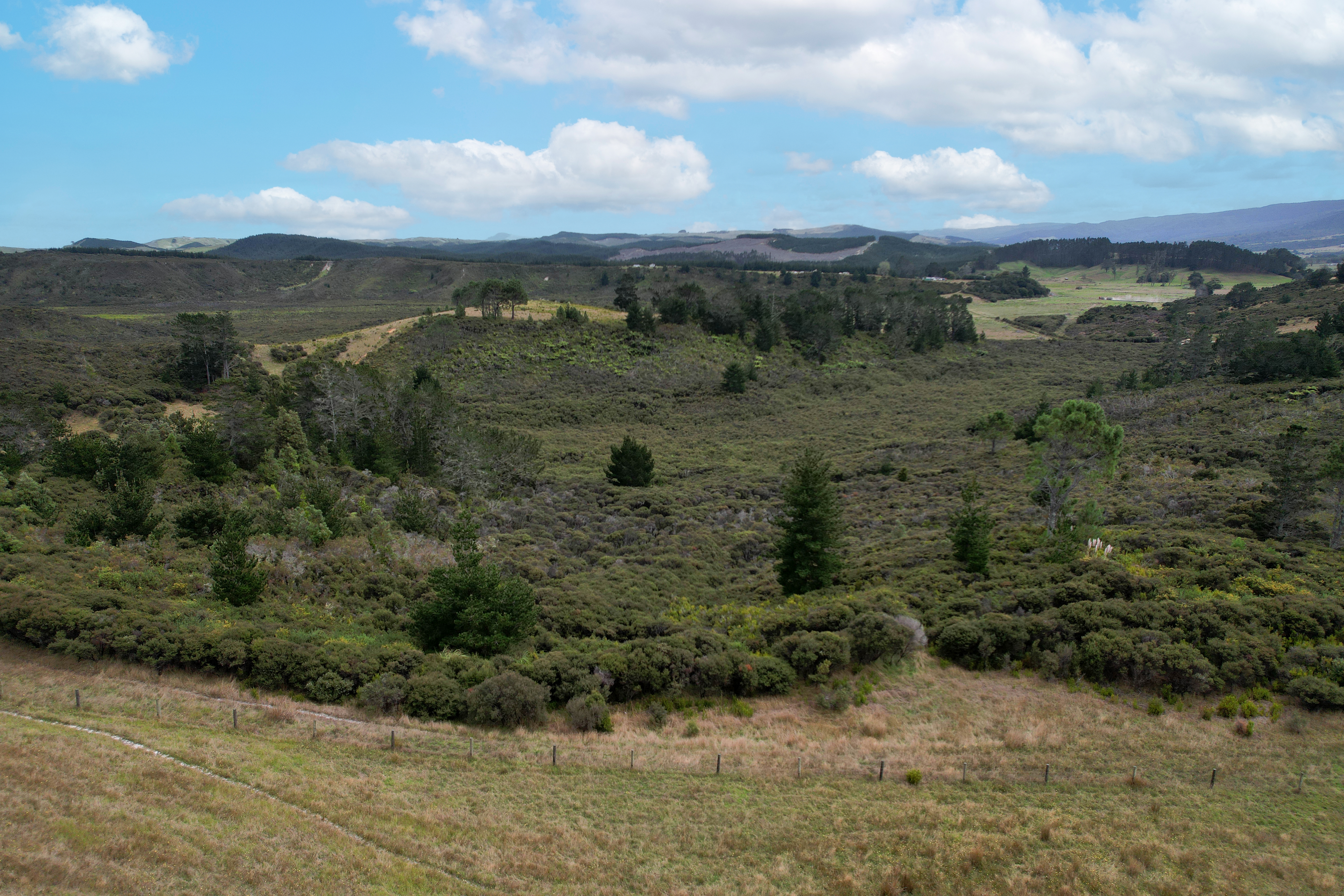 Donovan's Block, spanning an expansive 94.2 hectares, is a picturesque haven that beckons with the promise of a remarkable rural lifestyle. Nestled amidst the idyllic countryside, this sprawling property boasts not one, but two charming houses, offering ample space for comfortable living or the potential for a delightful guest retreat. A relic of a bygone era, the old cow shed stands as a testament to the area's rich agricultural history, now serving an opportunity to do some calf rearing to add to stock grazing. One of the standout features of Donovan's block is the thoughtful design that ensures every paddock has convenient access to a well-maintained raceway, simplifying the management of livestock and providing easy movement across the property. For those with a penchant for tinkering or seeking shelter for their machinery, there is a plethora of versatile shed space available, promising a practical solution for storage and workspace needs. Approximately 12 hectares of this good block consist of Ruawai flats, ideal for grazing or potentially developing into agricultural endeavors! Kumaras are the local crop on these flats. Meanwhile, a captivating 8 hectares of mature pine trees grace the landscape, offering not only aesthetic charm but also the potential for forestry income or a peaceful escape within your own property. For those who yearn to relish the tranquility of rural living without compromising on accessibility, Donovan's Block sits gracefully accessing a tarseal road. This means that while you can savour the peaceful countryside, you're just a short drive away from the convenience of nearby towns and amenities. Donovan's Block is an invitation to embrace the pastoral beauty of the land while enjoying the comforts of modern living, a truly unique and enchanting lifestyle opportunity.