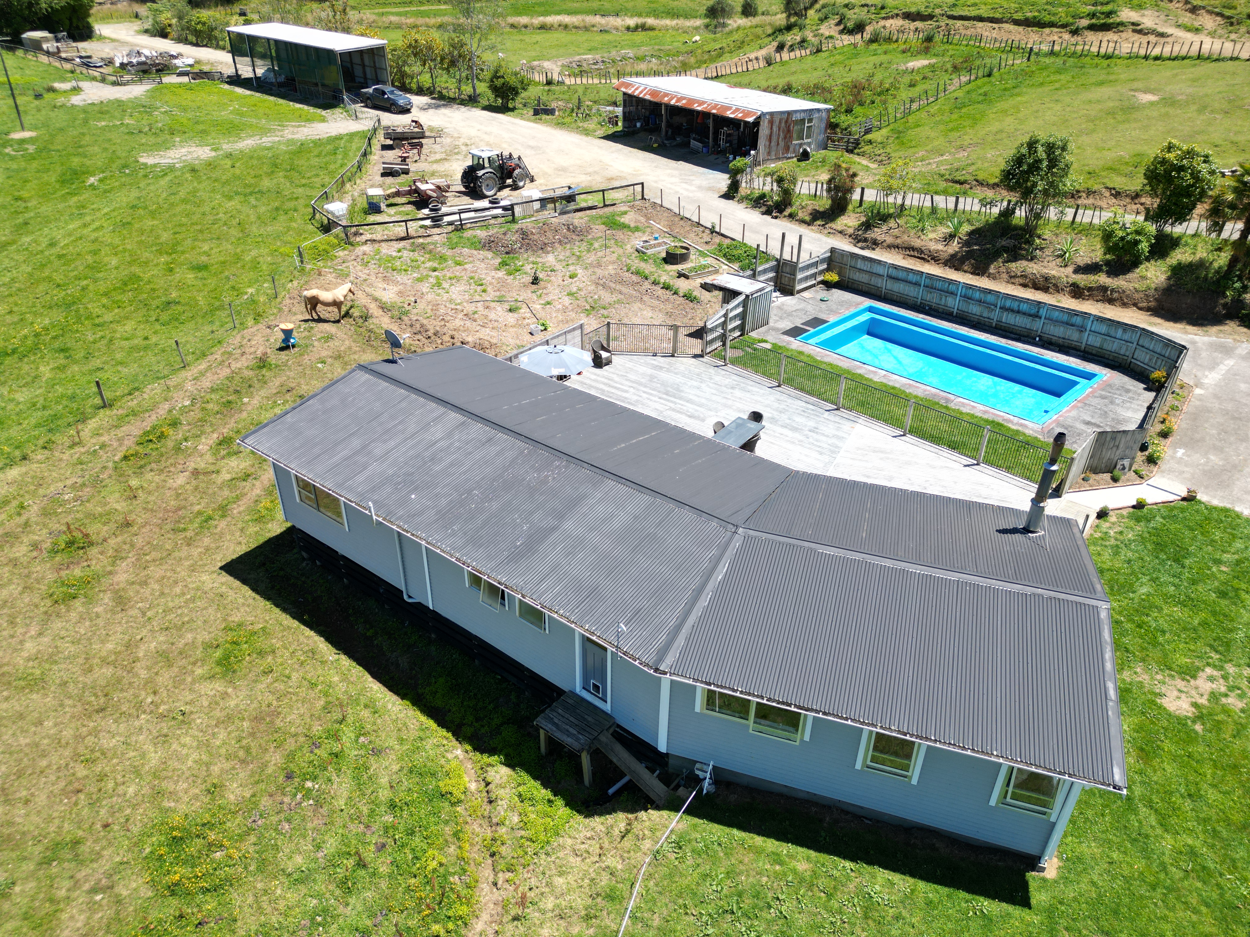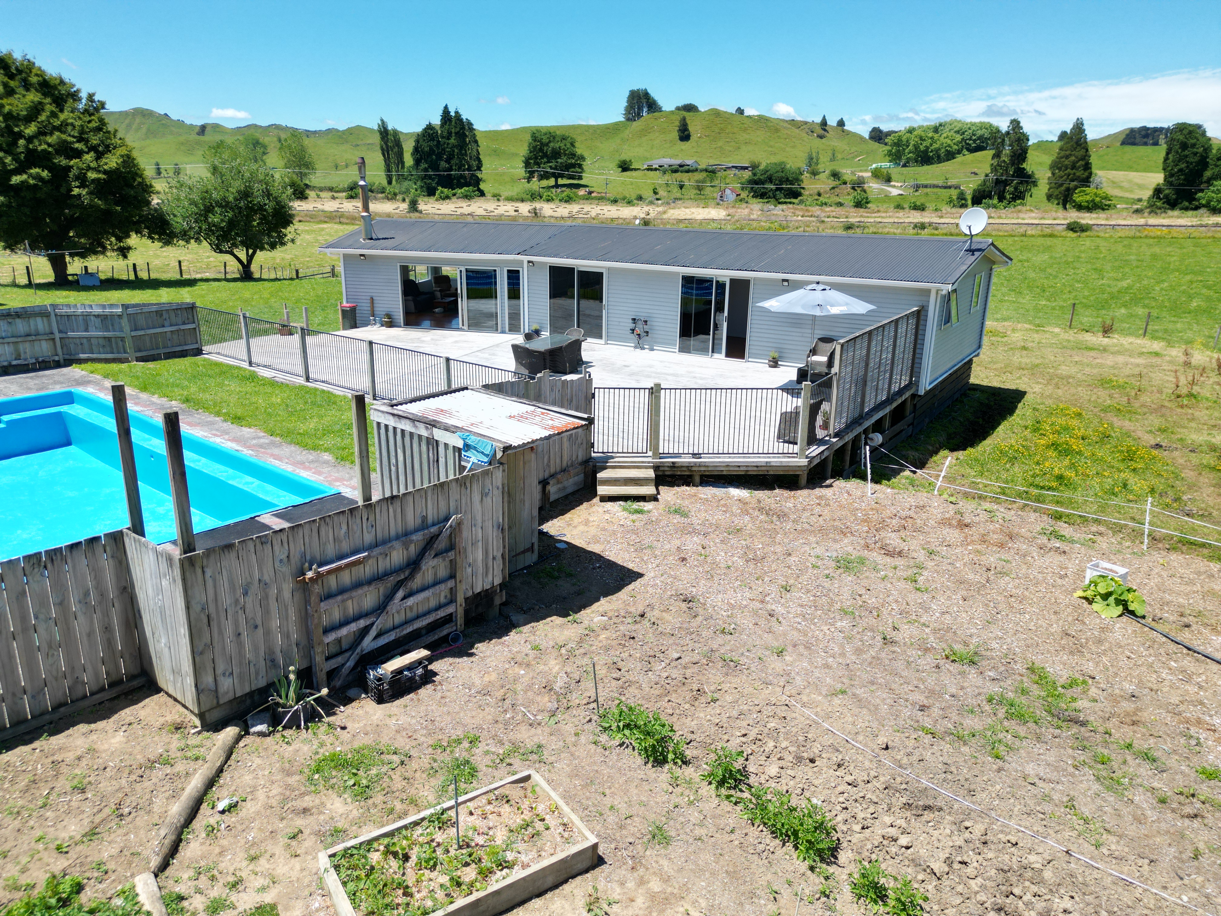 Located 32 km east of Stratford, this well presented 19 ha grazing property offers strong infrastructure and comfortable modern living. Approximately 14 ha is mowable, producing around 500 conventional bales of hay and 50 bales of silage annually. The modernised three bedroom home features a large outdoor deck and in-ground swimming pool, with reliable spring water reticulated to both the house and farm. Farm improvements include a woolshed with covered yards set up for goat or calf rearing (capacity for about 1,600 goats or 100 calves), cattle yards, three bay implement shed, large pole shed suitable for hay or calf rearing, and two hay sheds. Currently rearing goats and grazing 70 - 80 dairy heifers plus some beef, this property combines productivity and lifestyle. Hunting access on the neighbouring forestry property and use of an adjoining 2.6 ha grazing block are both available by negotiation.